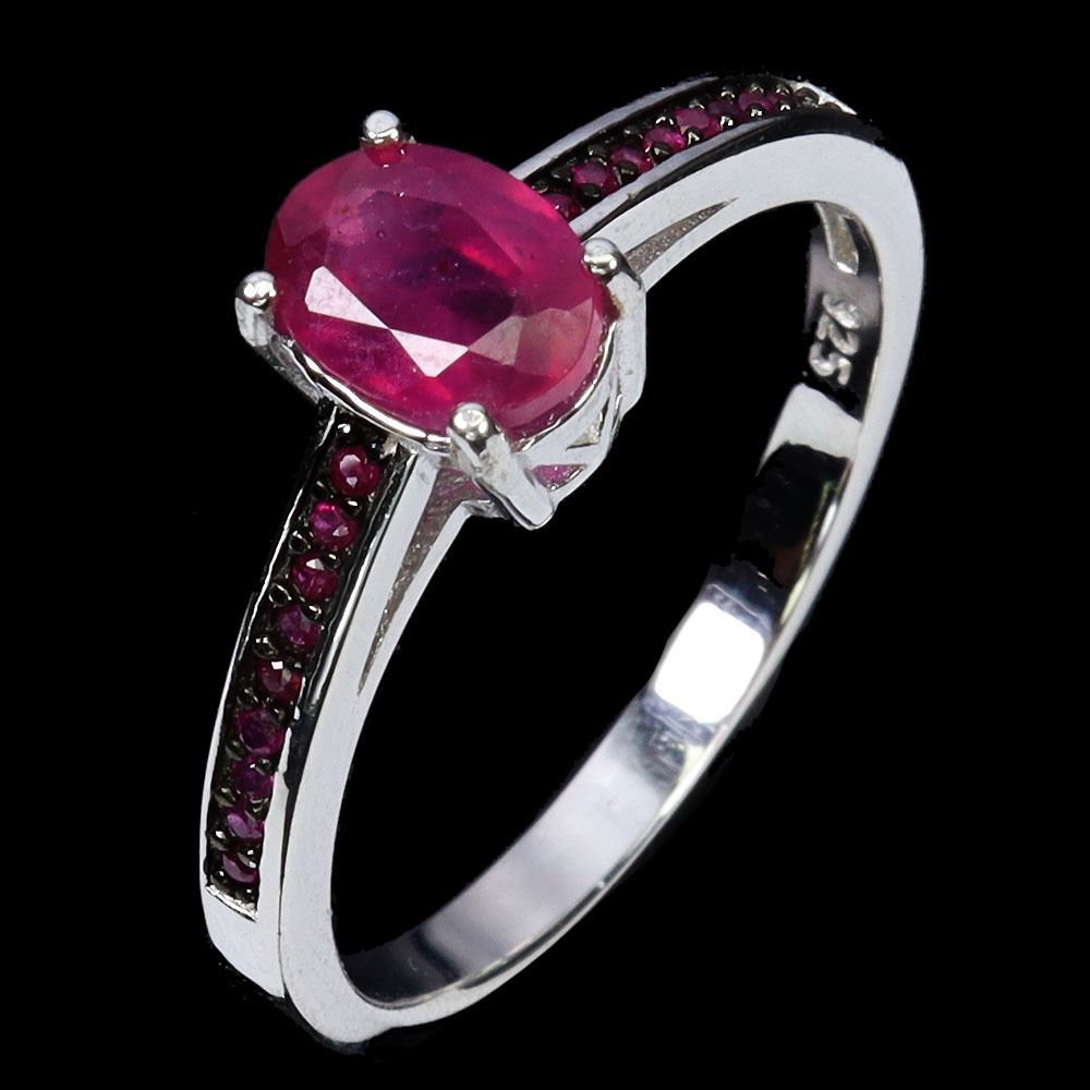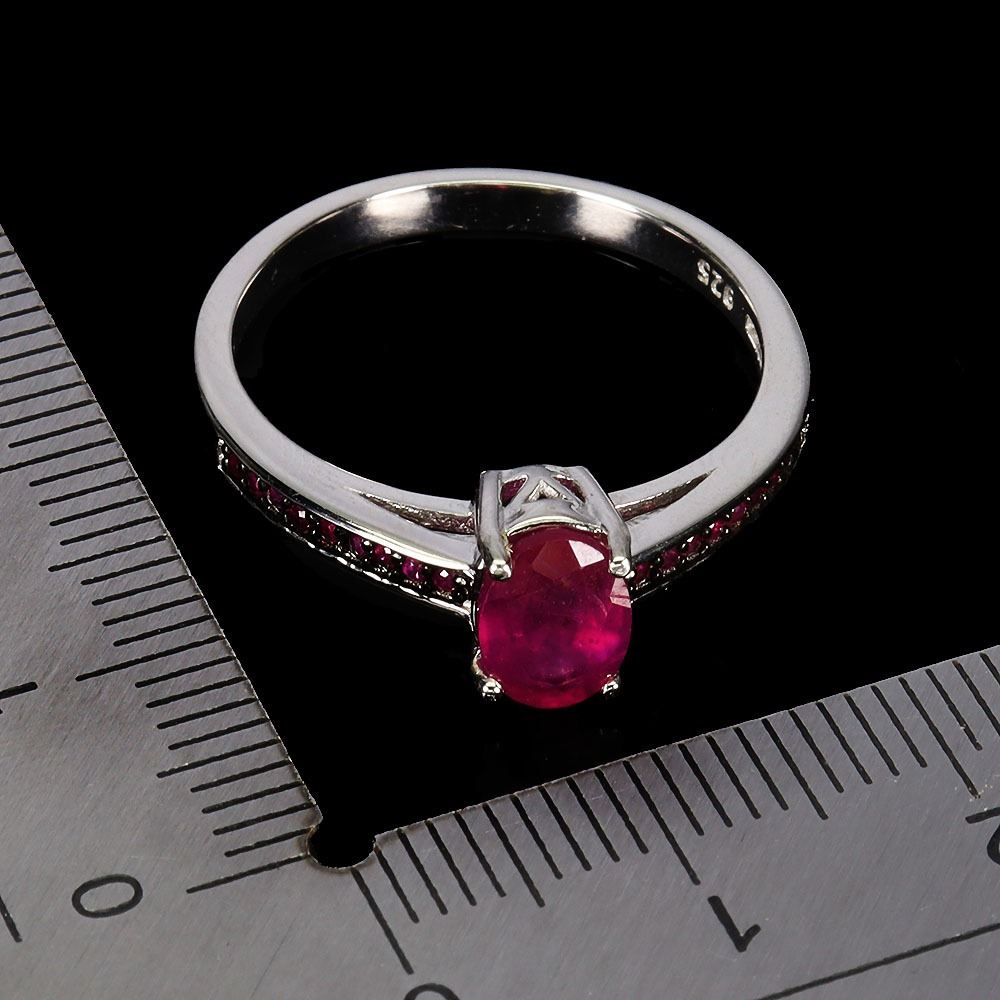 DIAMOND CUT RUBY RING IN 14K WHITE PLATED GOLD OVER 925 STERLING SILVER - SIZE 7 - APPRAISED REPLACEMENT VALUE