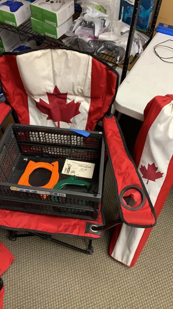 DIAMOND HORSESHOE SET WITH 2 FOLDING CAMP CHAIRS AND CRATE