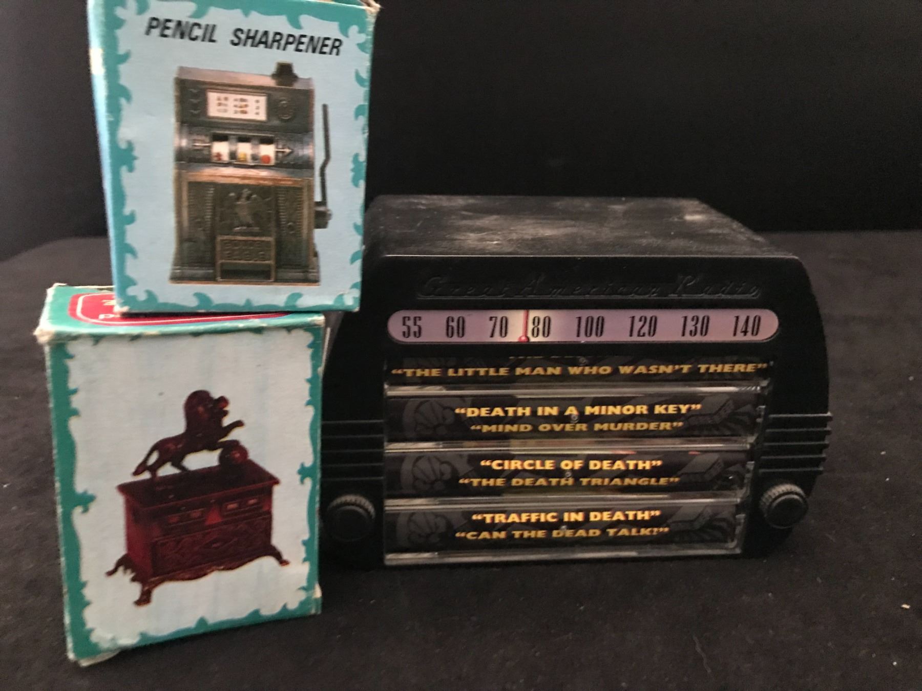 DIE CAST BANK SHARPENER AND CASSETTE TAPE LOT