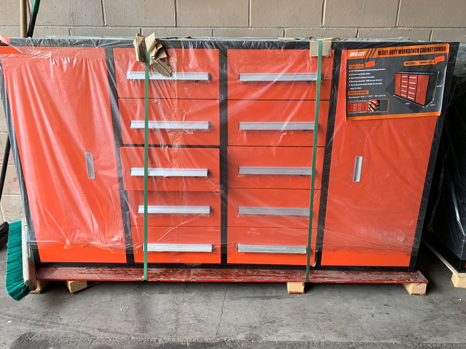 DIGGIT ORANGE / BLACK 10 DRAWER 2 DOOR 77"W X 20"D X 44"H WORK BENCH