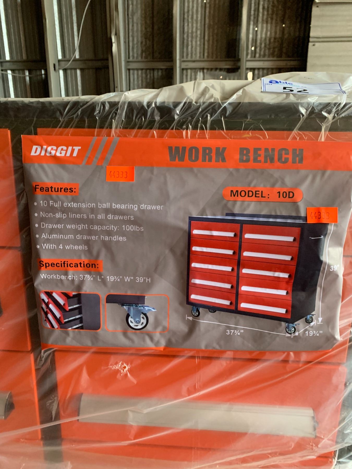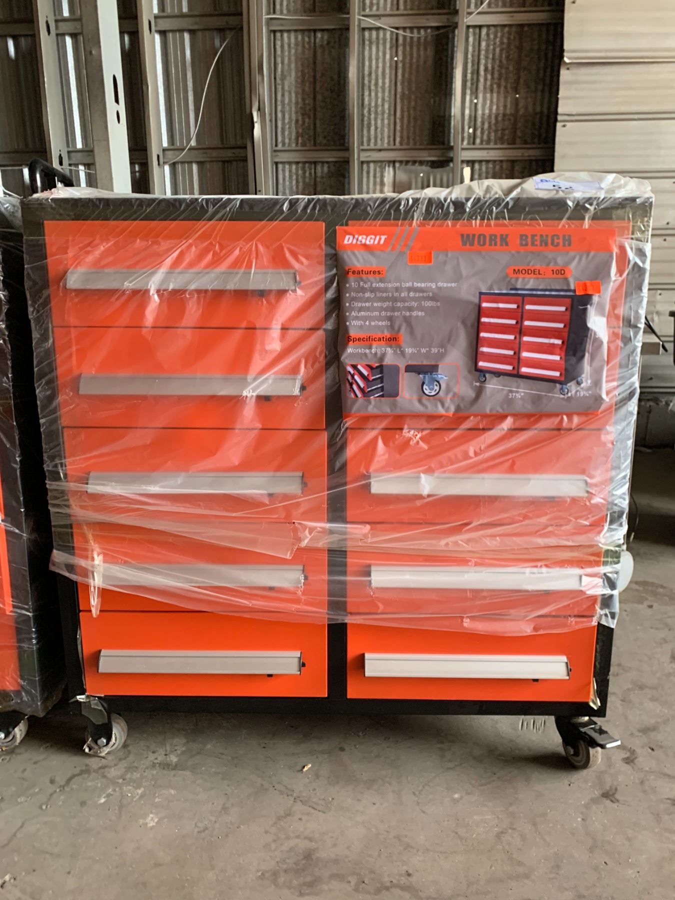 DIGGIT ORANGE / BLACK 10 DRAWER 38"W X 20"D X 38"H MOBILE MINI WORK BENCH