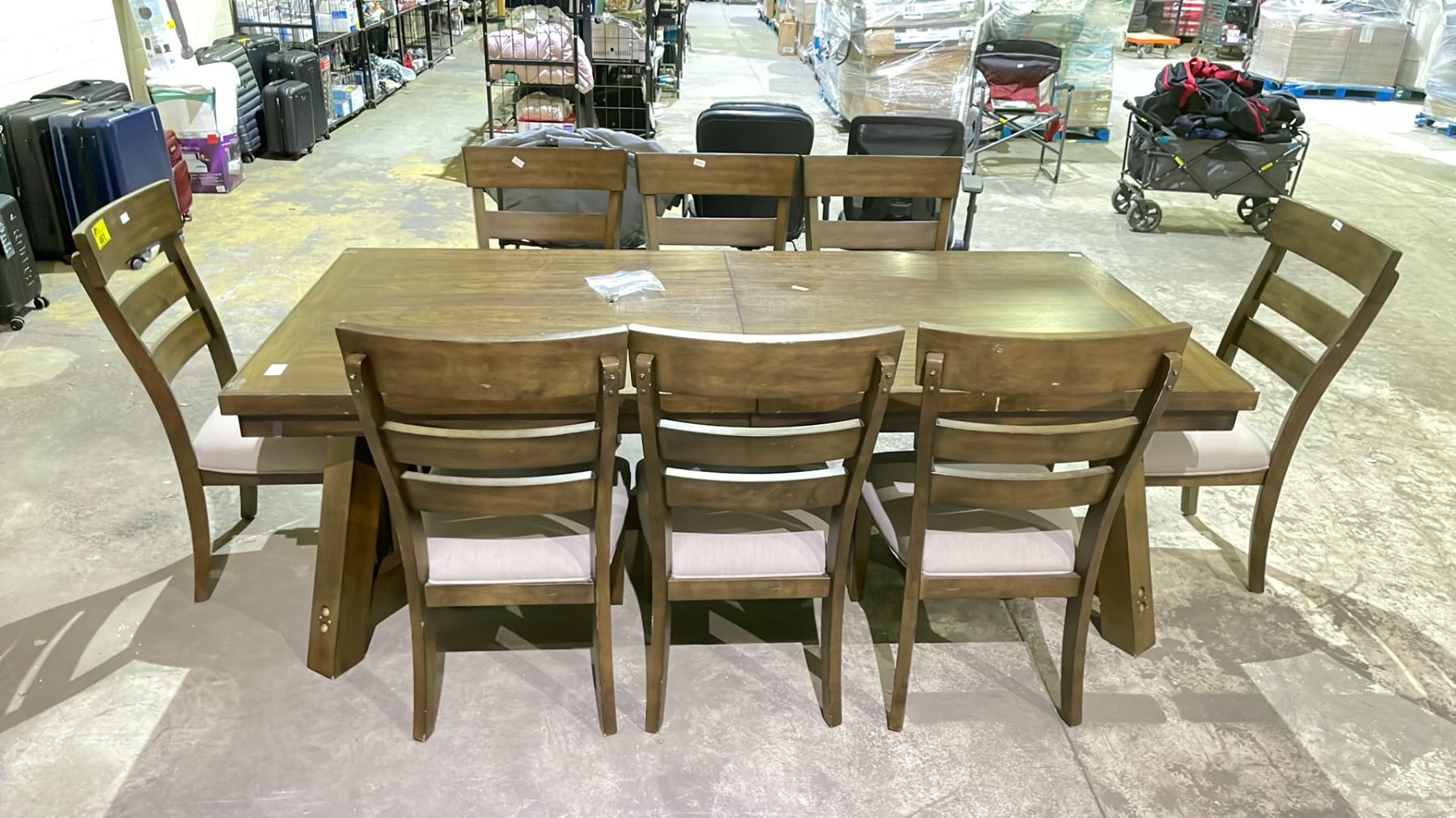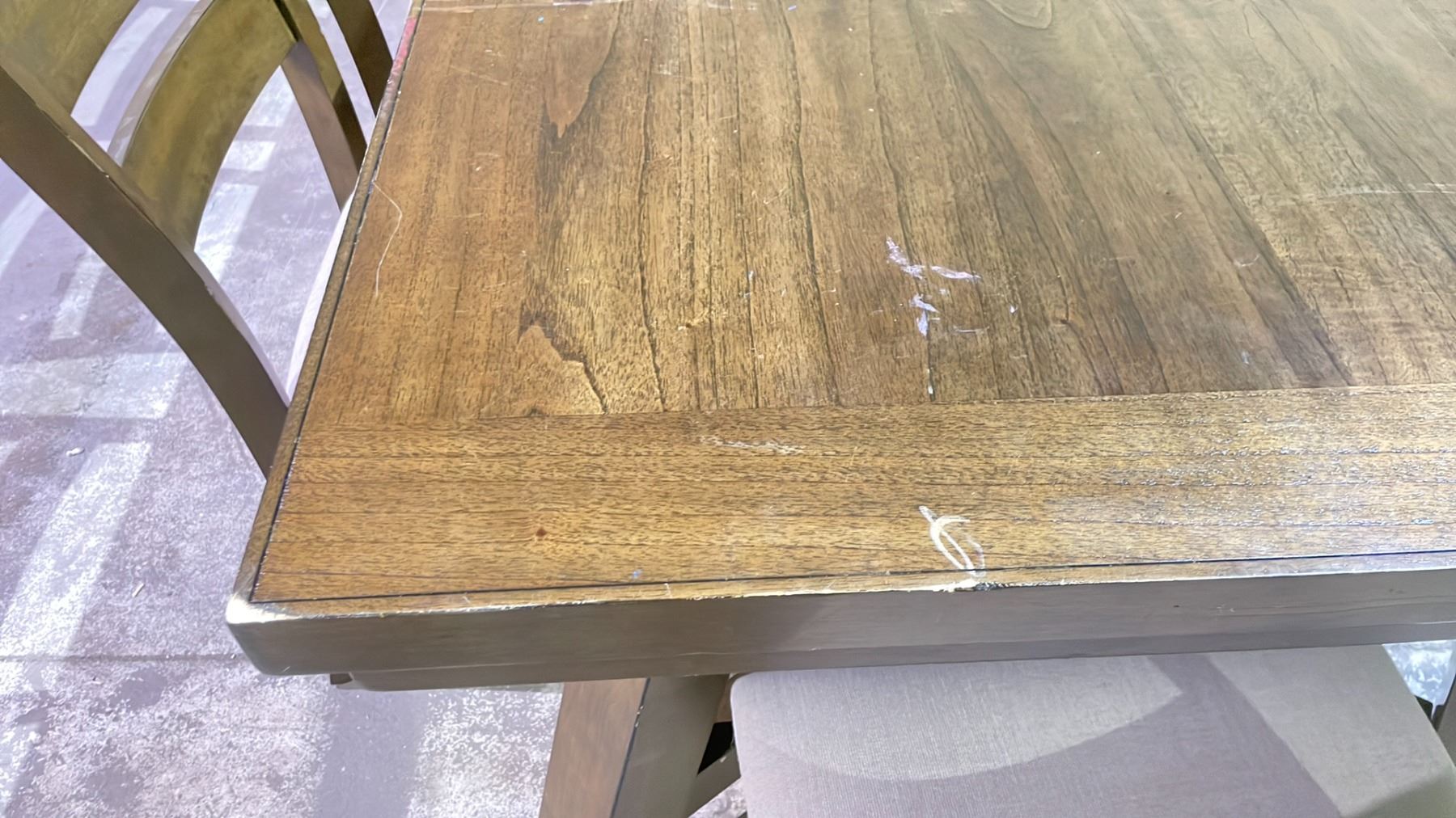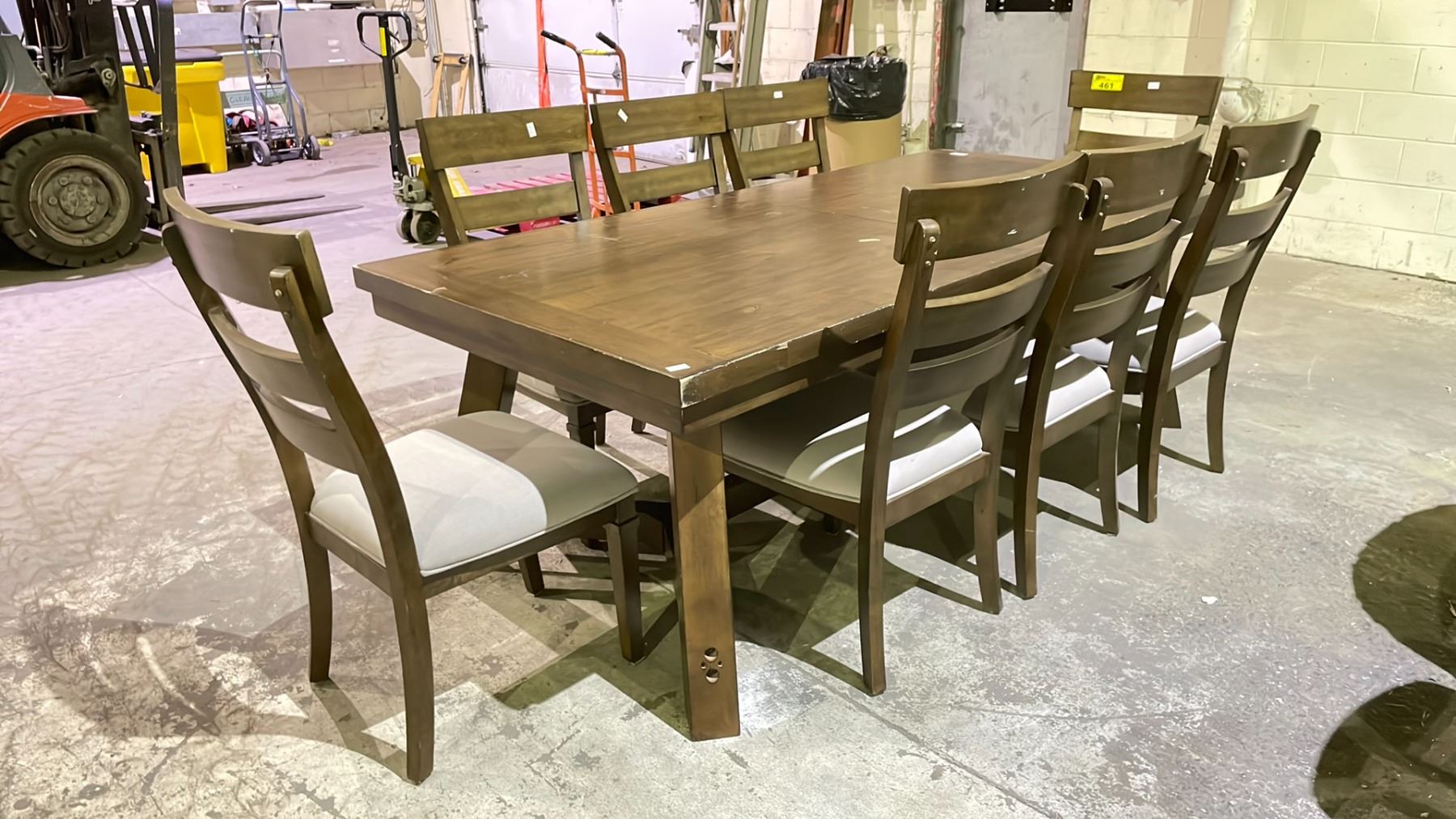 DINING TABLE & 8 DINING CHAIRS (COSMETIC DAMAGE)