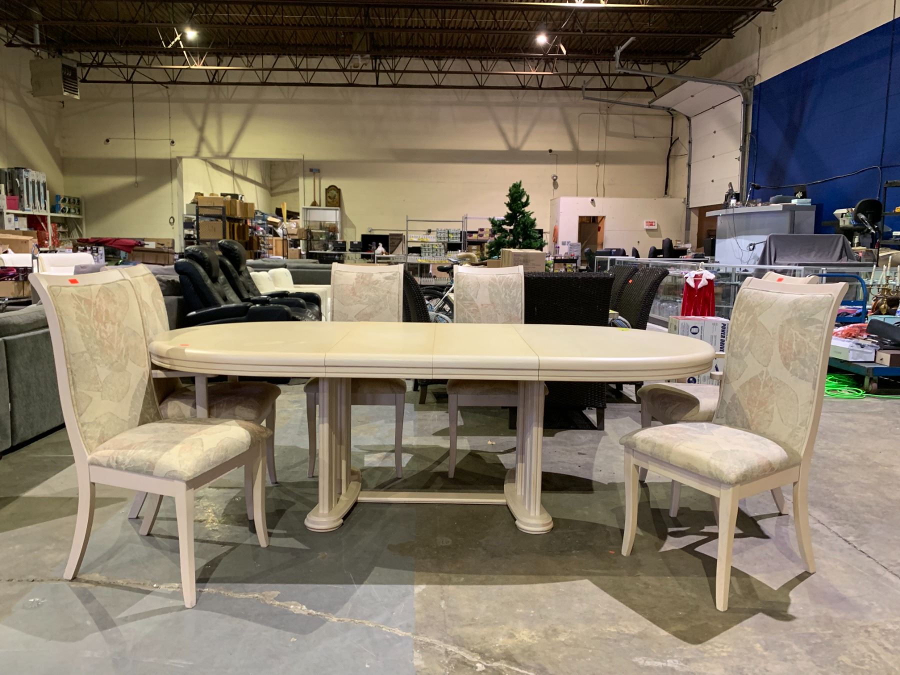 DINING TABLE (96"X42"X30") WITH 2 15" LEAVES & 6 CHAIRS