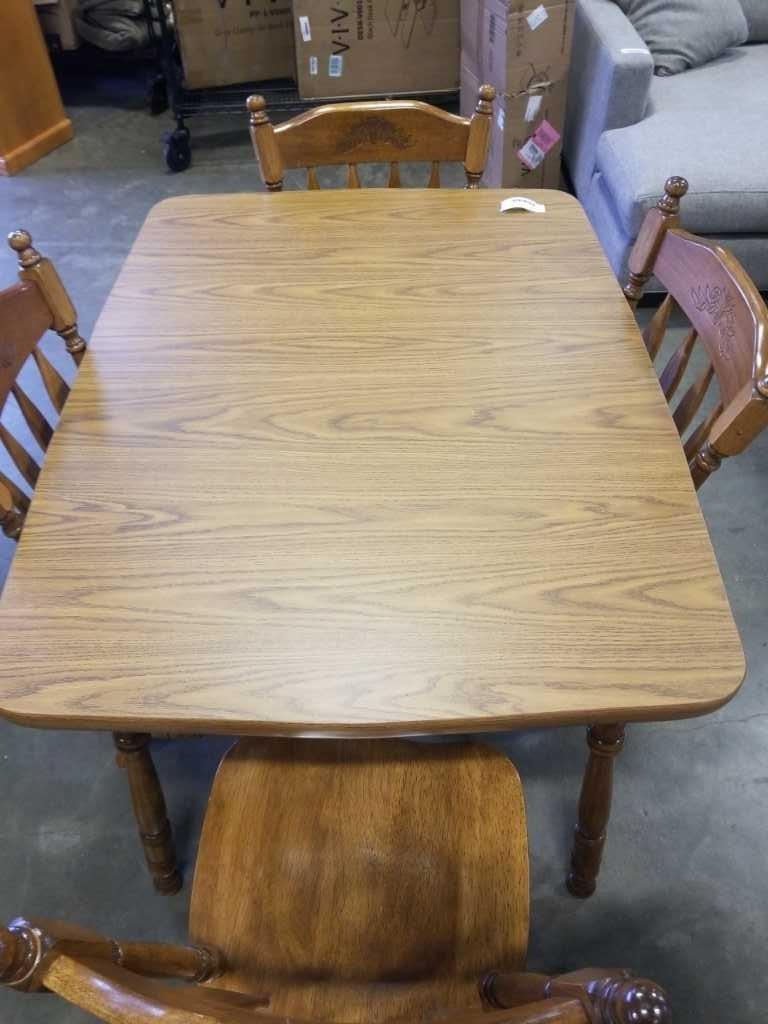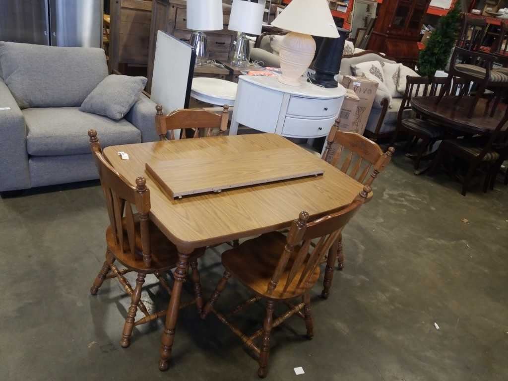 DINING TABLE WITH LEAF AND 4 PRESSBACK CHAIRS