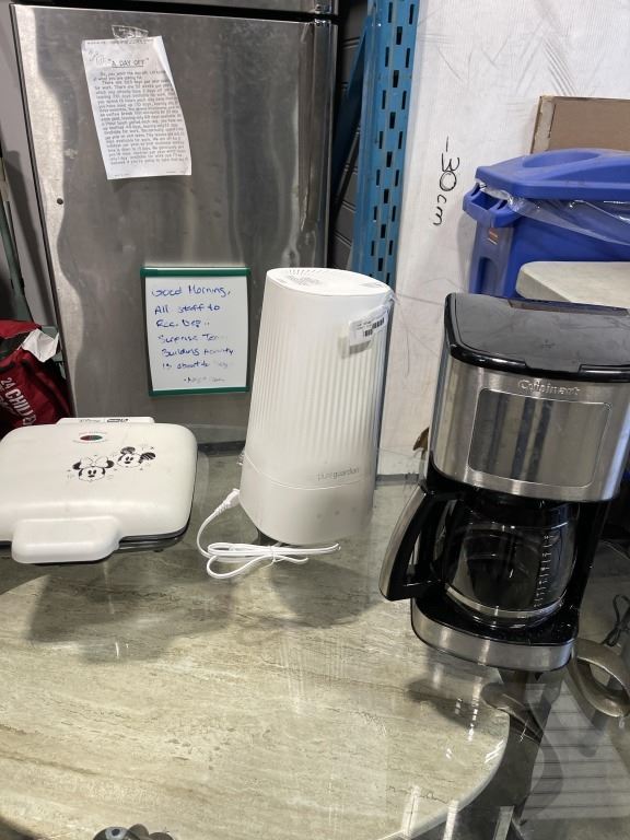 DISNEY DASH FOUR SPOT WAFFLE MAKER, PURE GUARDIAN PURIFIER AND CUISINART COFFEE MAKER
