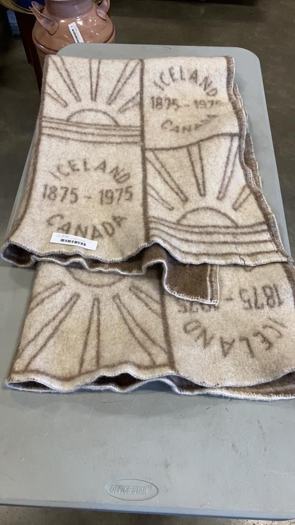 DOG SLED WOOL BLANKET ICELAND CANADA 1975 COMMEMORATIVE BLANKET