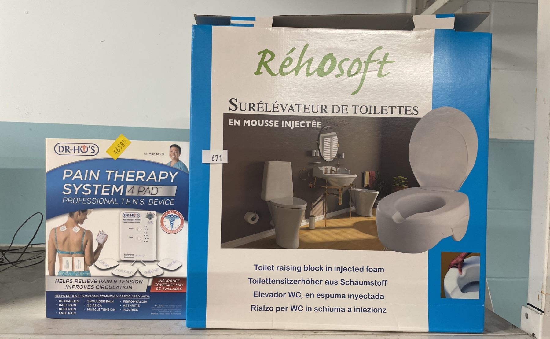 DR HO'S PAIN THERAPY SYSTEM PAD & A REHOSOFT TOILET RAISING BLOCK