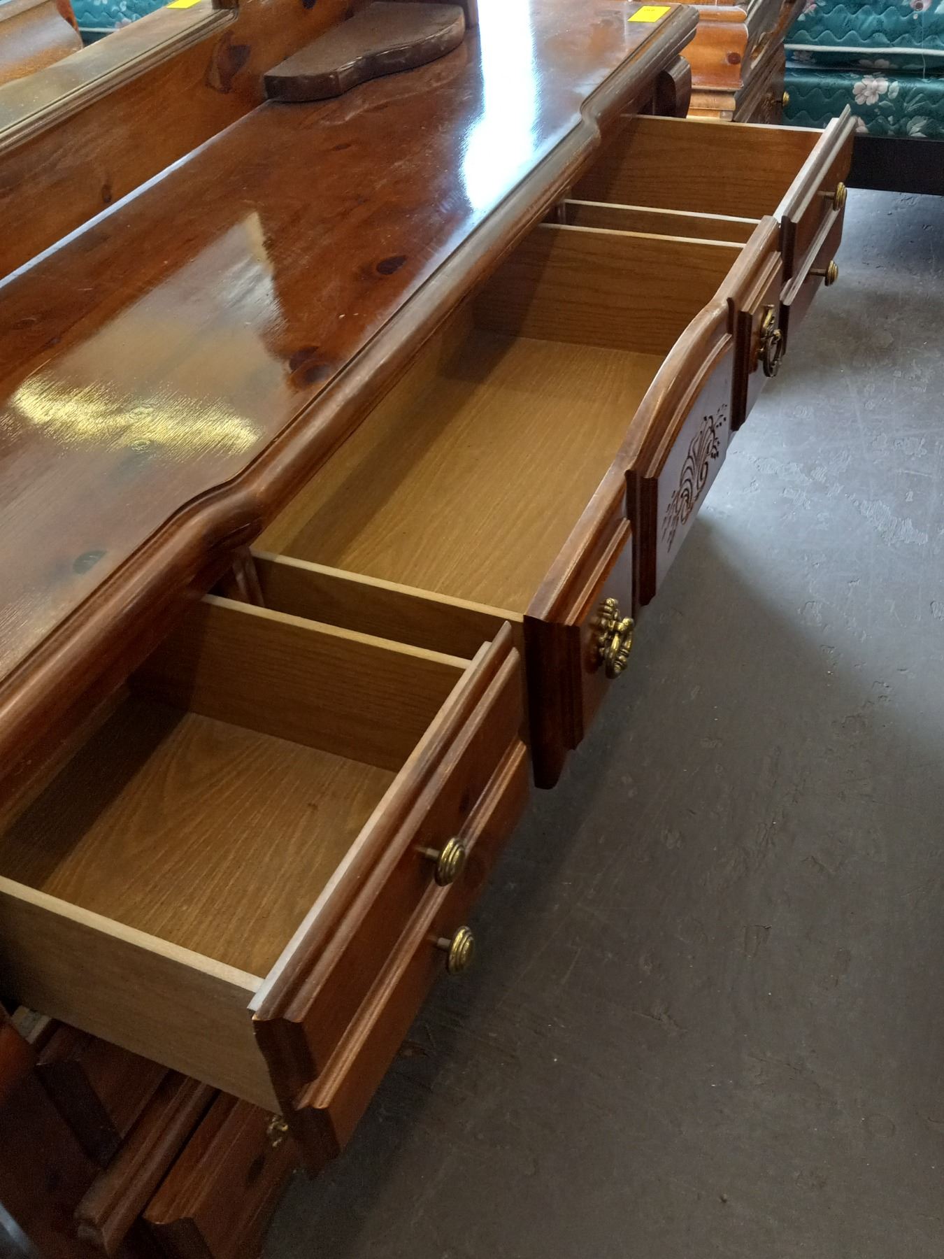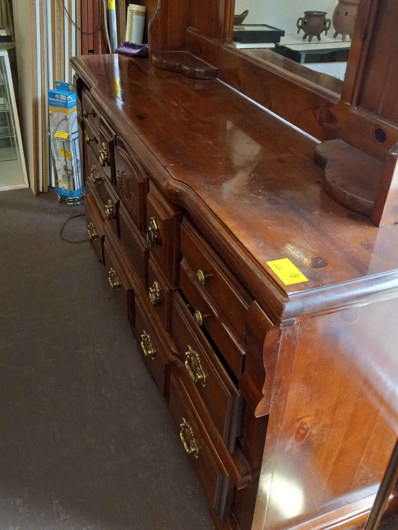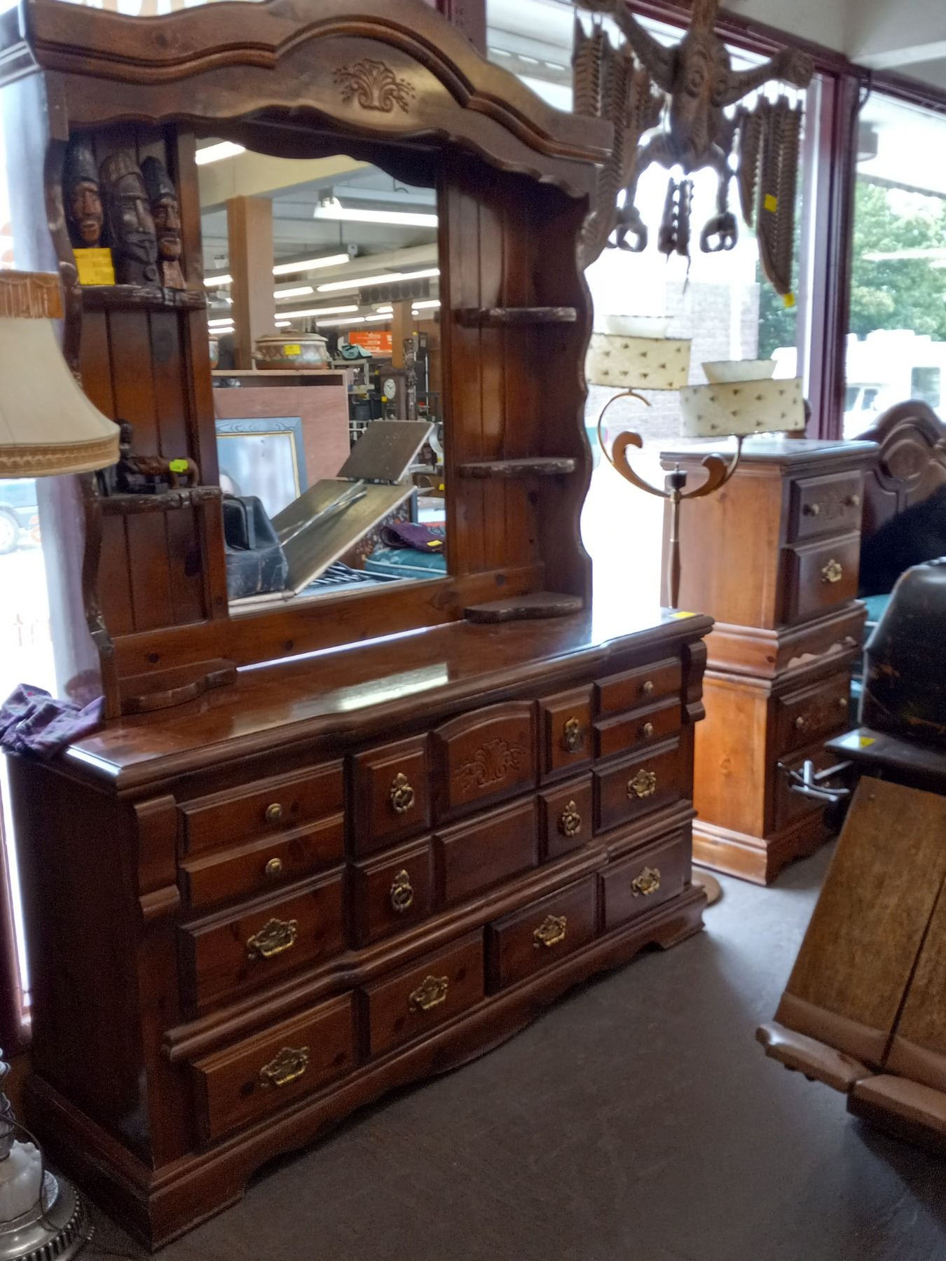 DRESSER WITH FREE STANDING MIRROR AND TWO END TABLES