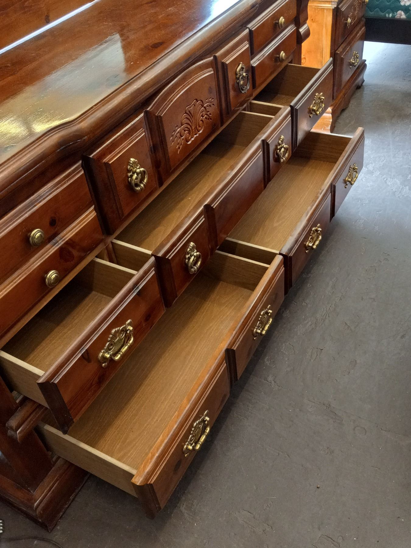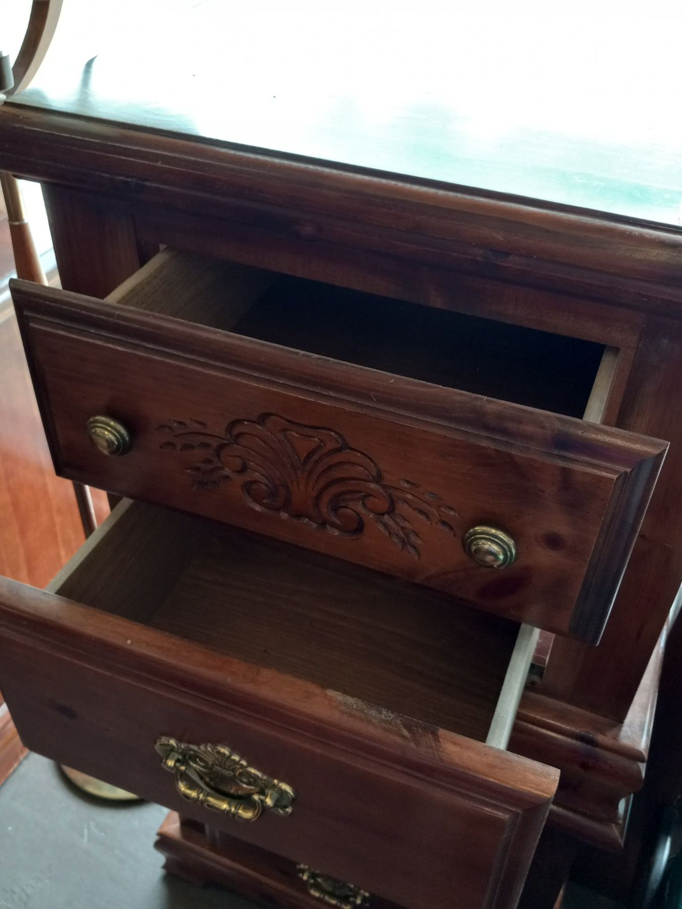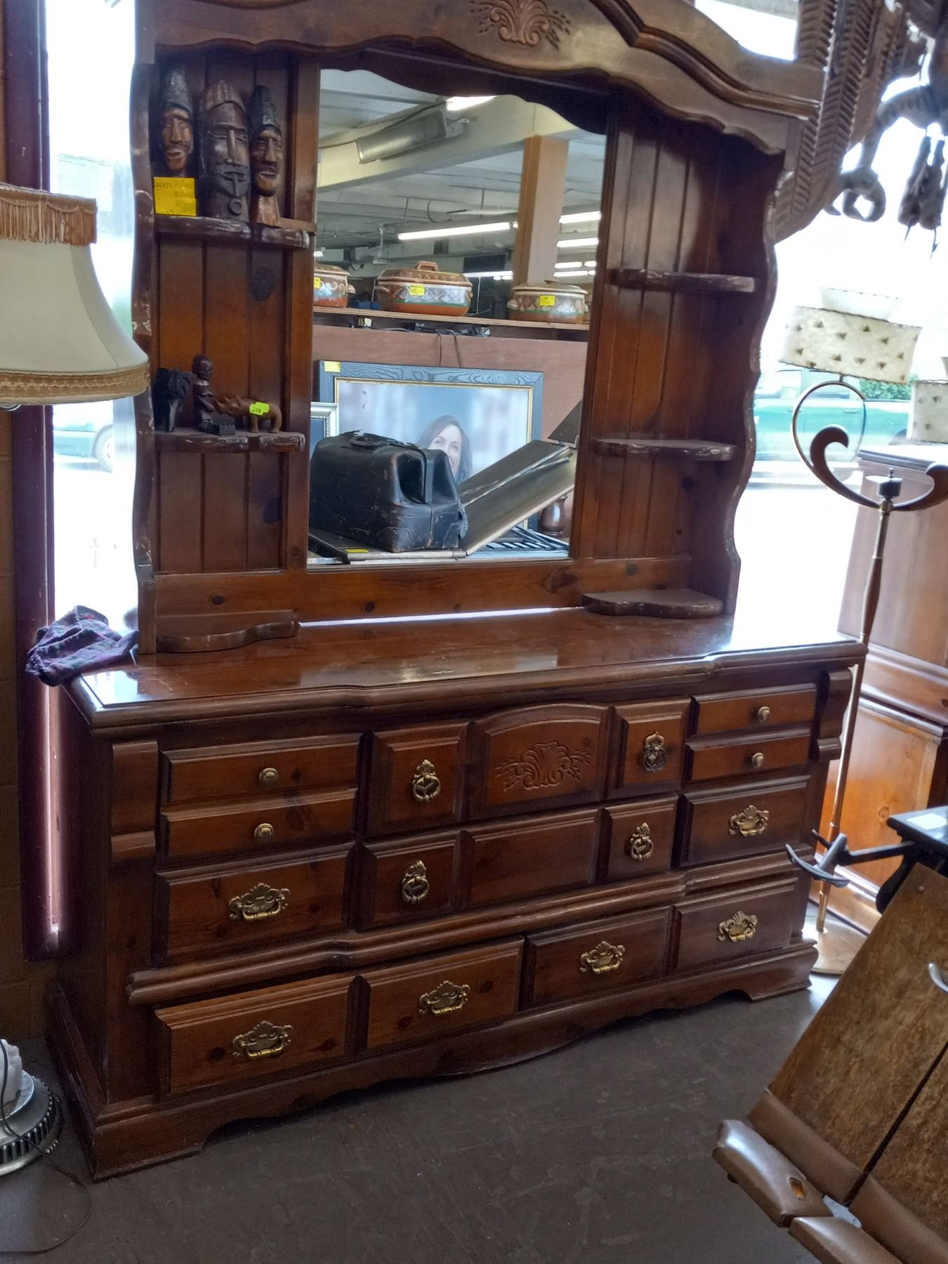 DRESSER WITH FREE STANDING MIRROR AND TWO END TABLES