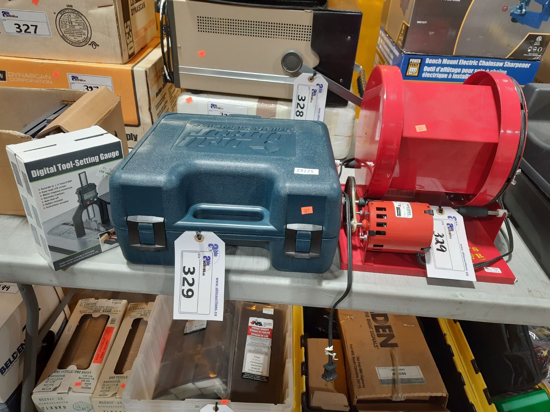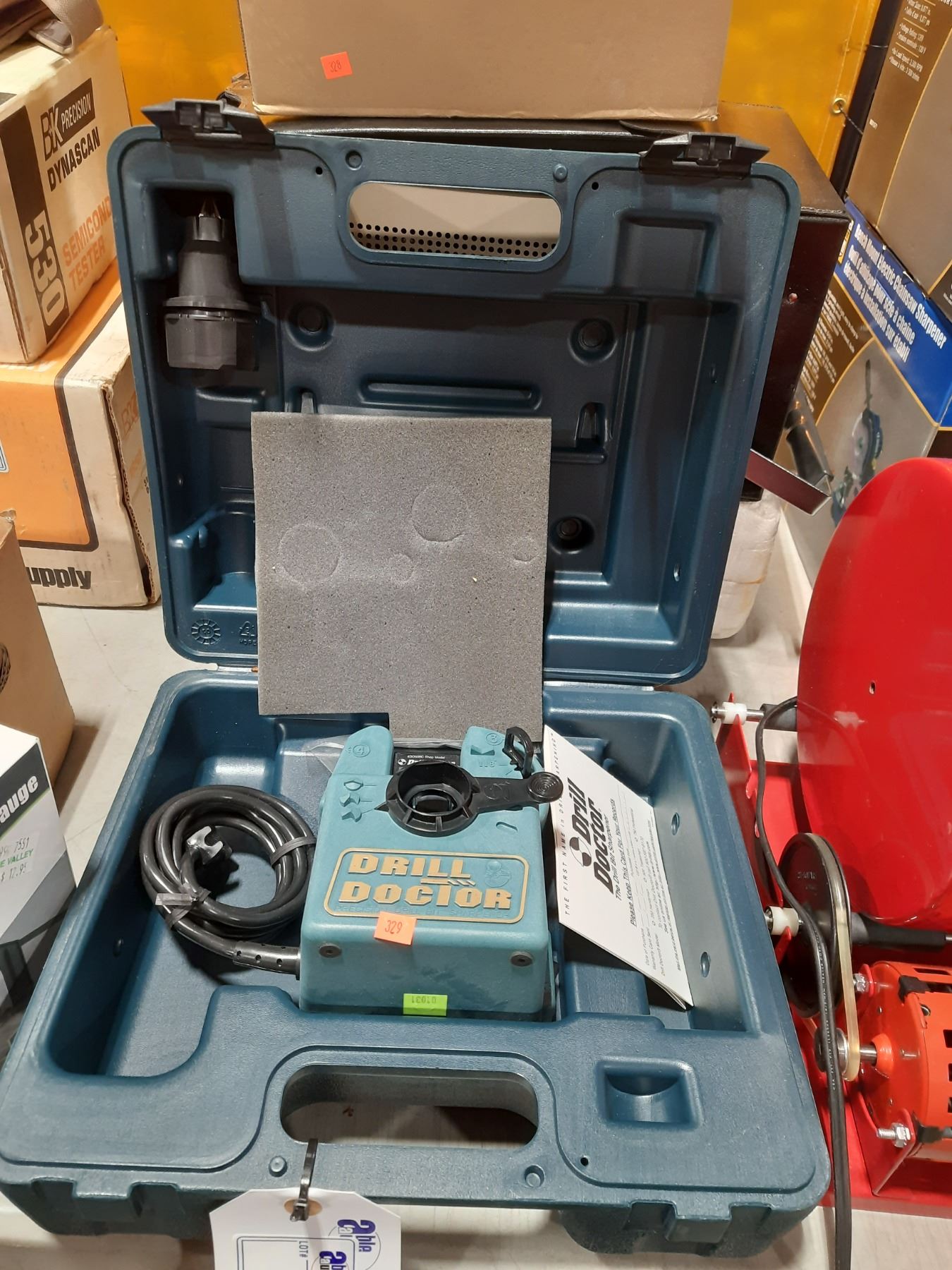 DRILL DOCTOR DRILL BIT SHARPENER IN HARD CASE, RED THUMLER'S TUMBLER MODEL#B HEAVY DUTY ROCK TUMBLER & 2-DIGITAL TOOL SETTING GAUGE