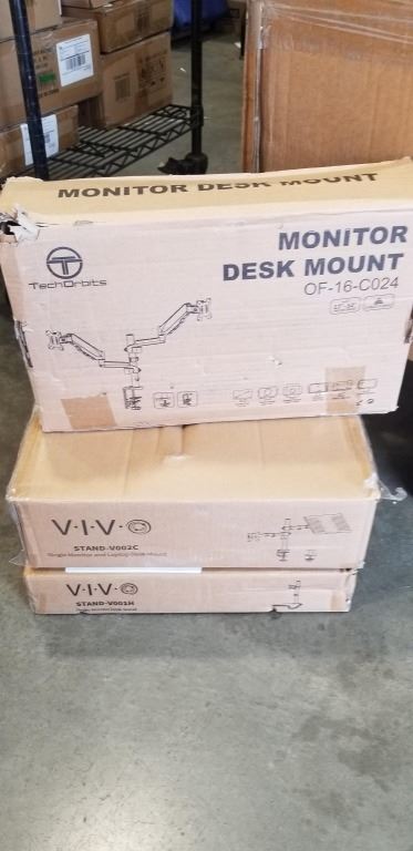 DUAL MONITOR ADJUSTABLE DESK MOUNT, VIVO SINGLE MONITOR DESK STAND AND VIVO SINGLE MONITOR AND LAPTOP DESK MOUNT