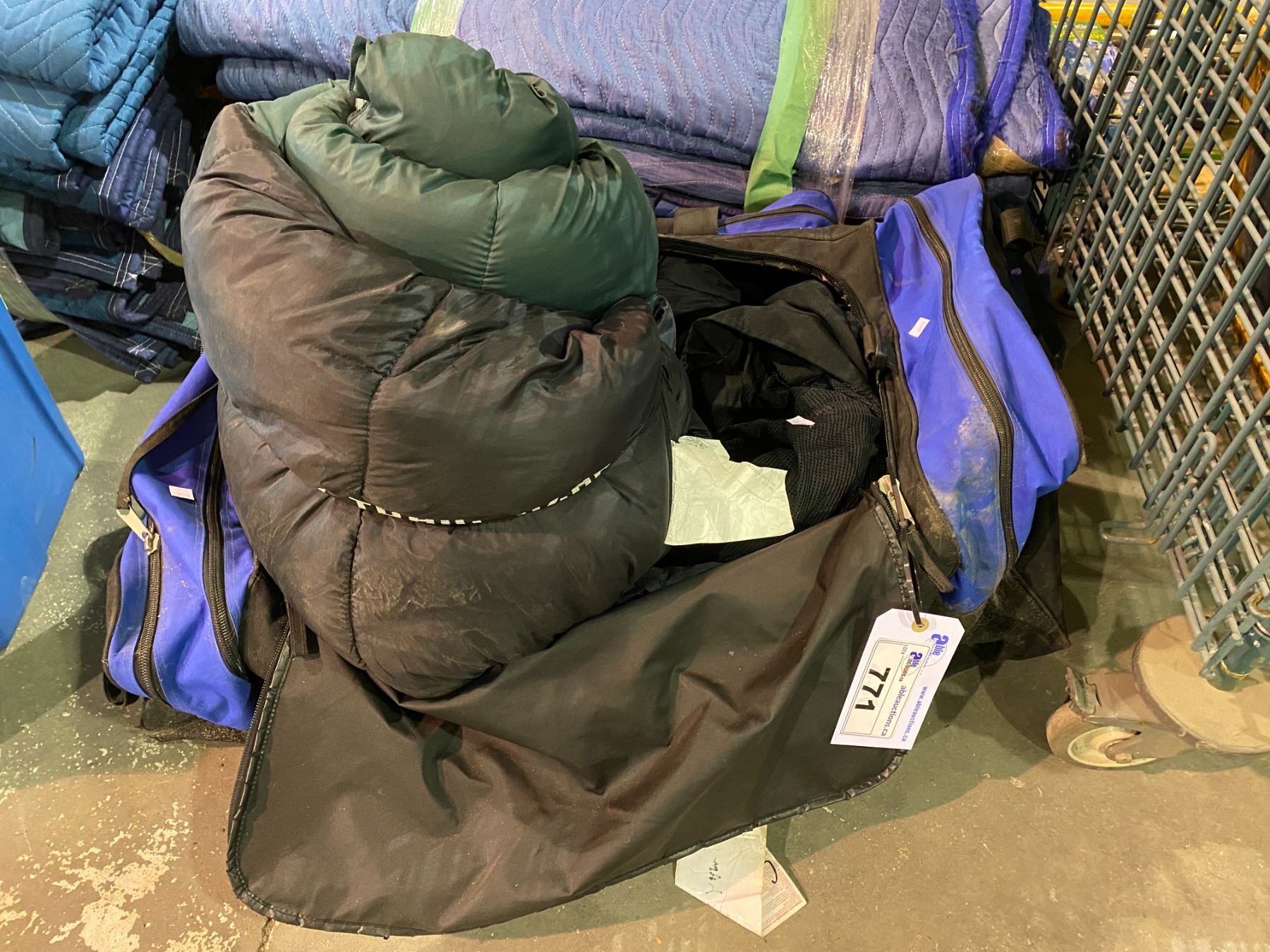 DUFFLE BAG, SLEEPING BAG & ASSORTED JACKETS