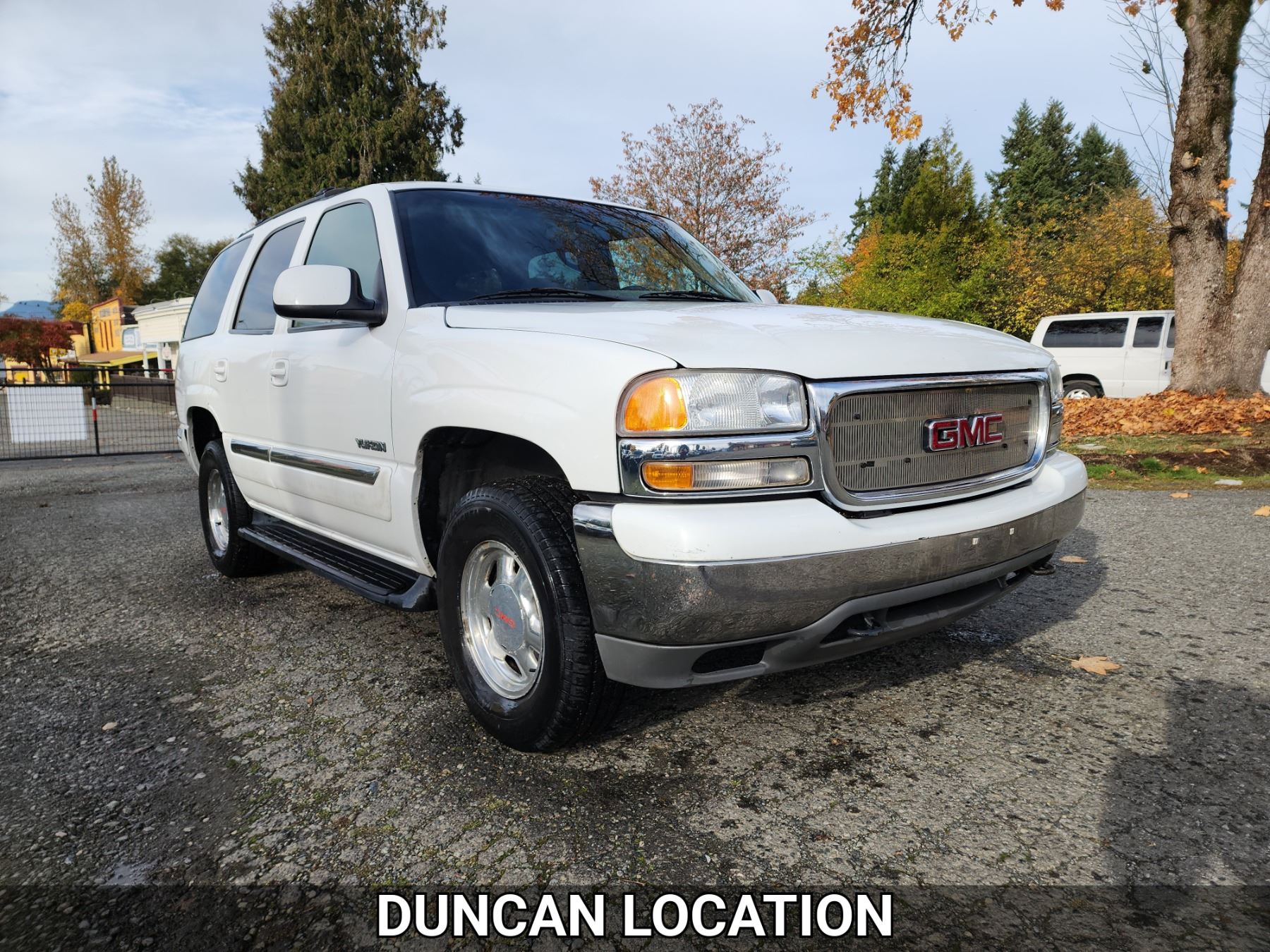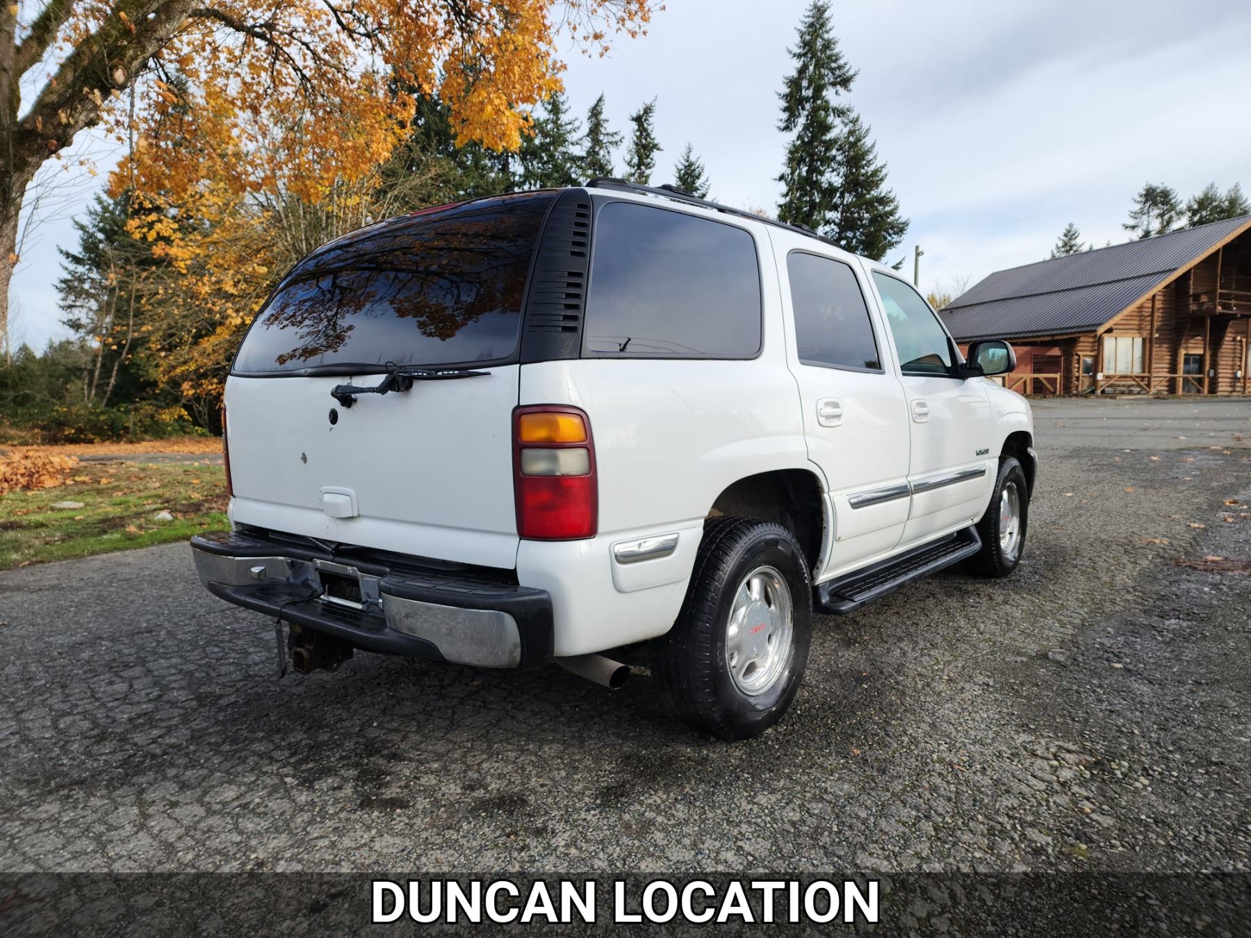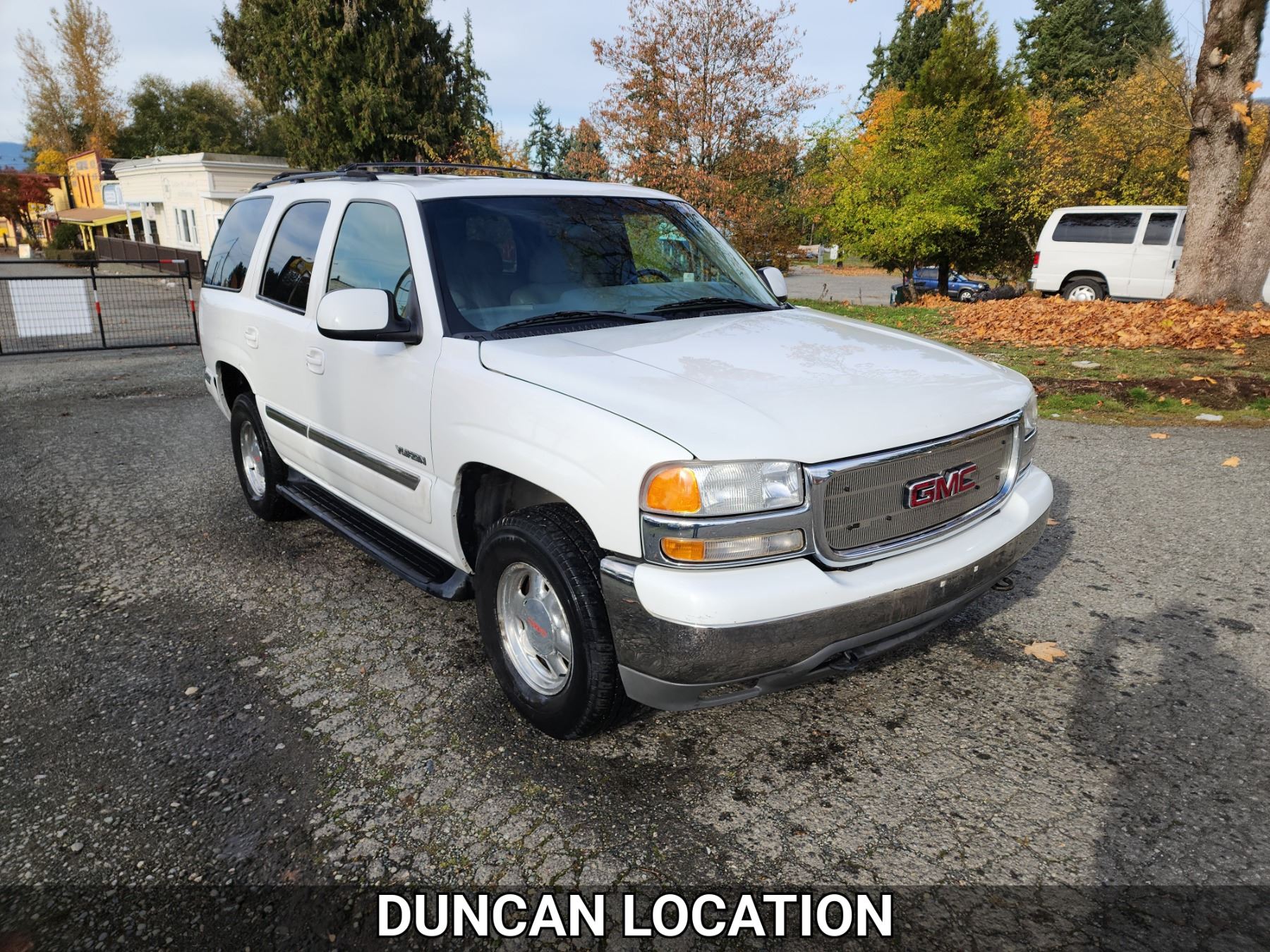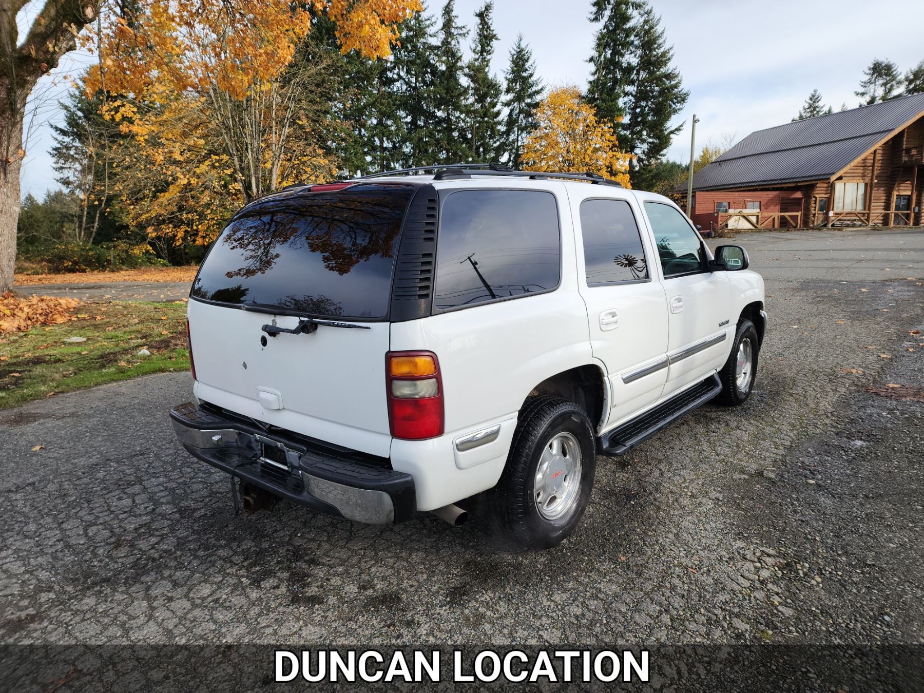 2001 GMC YUKON, WHITE, 362341 KMS, 5.3L, 8 CYLINDER, GASOLINE, AUTOMATIC, TRANSMISSION, FOUR WHEEL DRIVE, 5 PASSENGER. AIR CONDITIONING, POWER WINDOWS, POWER LOCKS, KEY-LESS ENTRY, TILT STEERING, CRUISE CONTROL, ALLOY WHEELS, ANTI THEFT, DUAL AIR BAGS, CD PLAYER, AFTERMARKET STEREO, LEATHER SEATS, POWER SEATS, HEATED SEATS, MEMORY SEATS, HEATED MIRRORS, REAR HEAT AND AIR, ROOF RACK, TOW PACKAGE, POWER MIRRORS, . DECLARATIONS: NO DESIGNATIONS 0 ACCIDENTS 2 GLASS CLAIM, TOTALLING $811. SERVICE HISTORY SHOWS34 RECORDS.