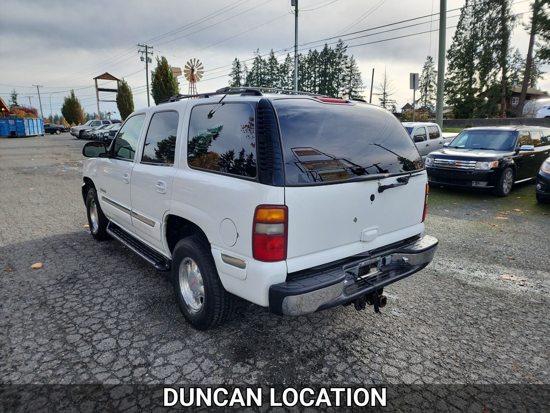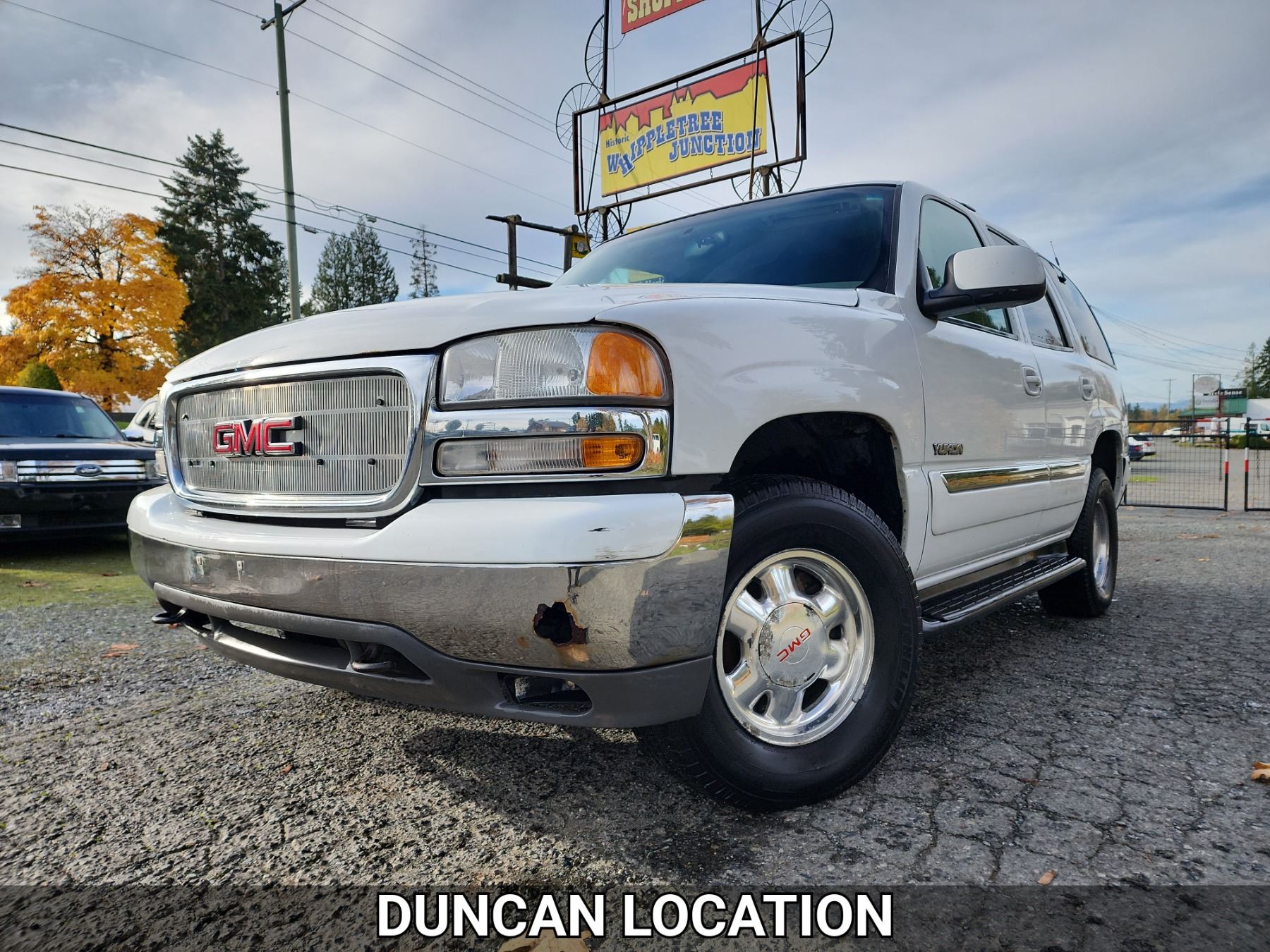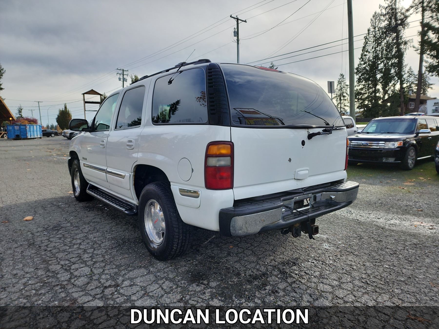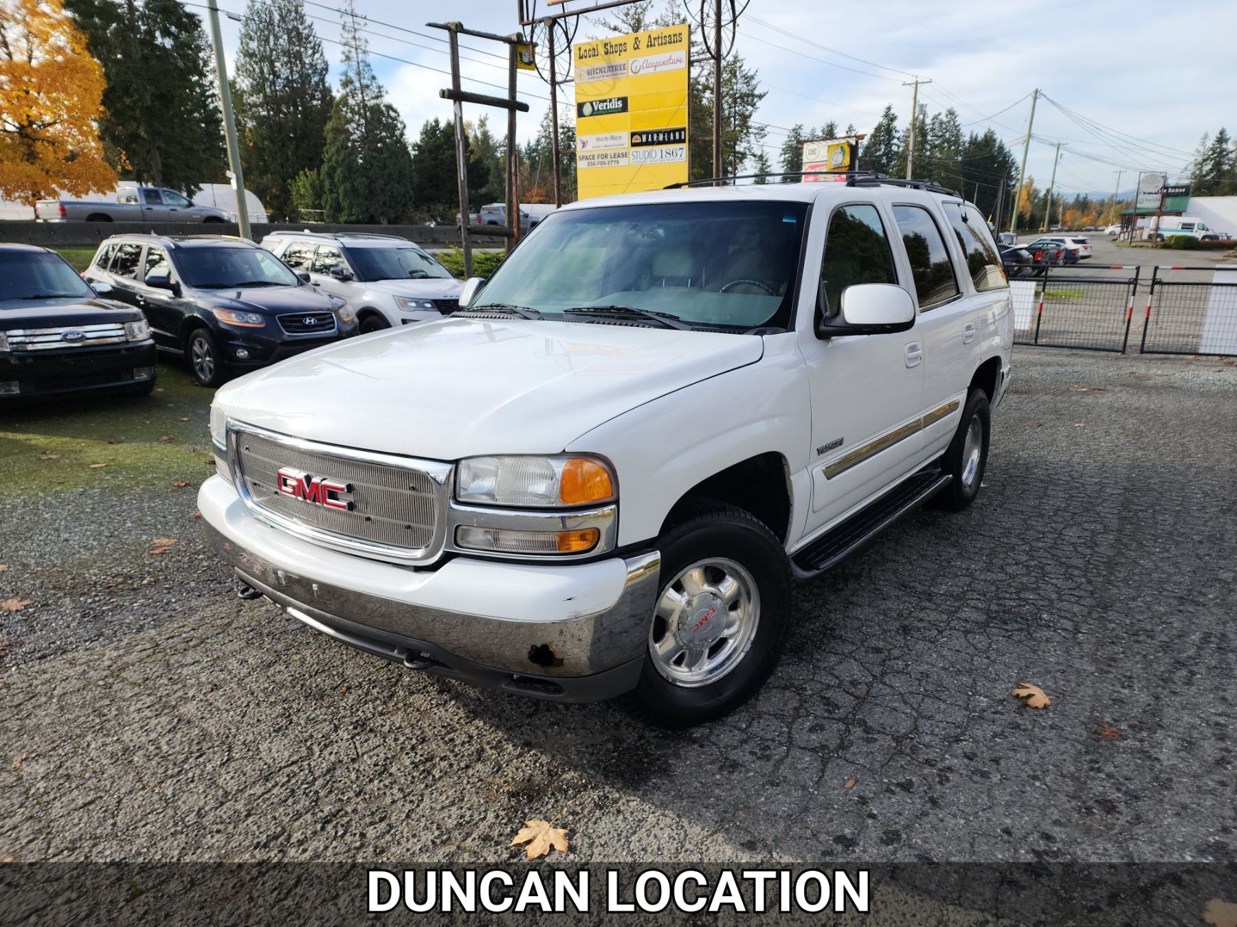 2001 GMC YUKON, WHITE, 362341 KMS, 5.3L, 8 CYLINDER, GASOLINE, AUTOMATIC, TRANSMISSION, FOUR WHEEL DRIVE, 5 PASSENGER. AIR CONDITIONING, POWER WINDOWS, POWER LOCKS, KEY-LESS ENTRY, TILT STEERING, CRUISE CONTROL, ALLOY WHEELS, ANTI THEFT, DUAL AIR BAGS, CD PLAYER, AFTERMARKET STEREO, LEATHER SEATS, POWER SEATS, HEATED SEATS, MEMORY SEATS, HEATED MIRRORS, REAR HEAT AND AIR, ROOF RACK, TOW PACKAGE, POWER MIRRORS, . DECLARATIONS: NO DESIGNATIONS 0 ACCIDENTS 2 GLASS CLAIM, TOTALLING $811. SERVICE HISTORY SHOWS34 RECORDS.