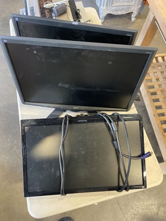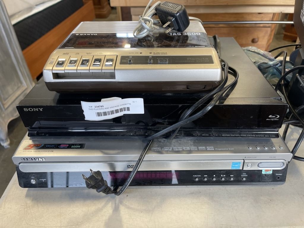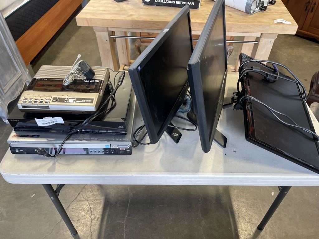 DVD PLAYERS AND VINTAGE CASSETTE RECORDER, 3 COMPUTER MONITORS, ALL WORKING