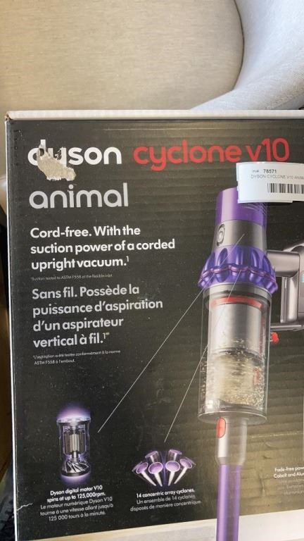 DYSON CYCLONE V10 ANIMAL CORDLESS VACUUM IN BOX W/ CHARGER AND ACCESSORIES - TESTED WORKING
