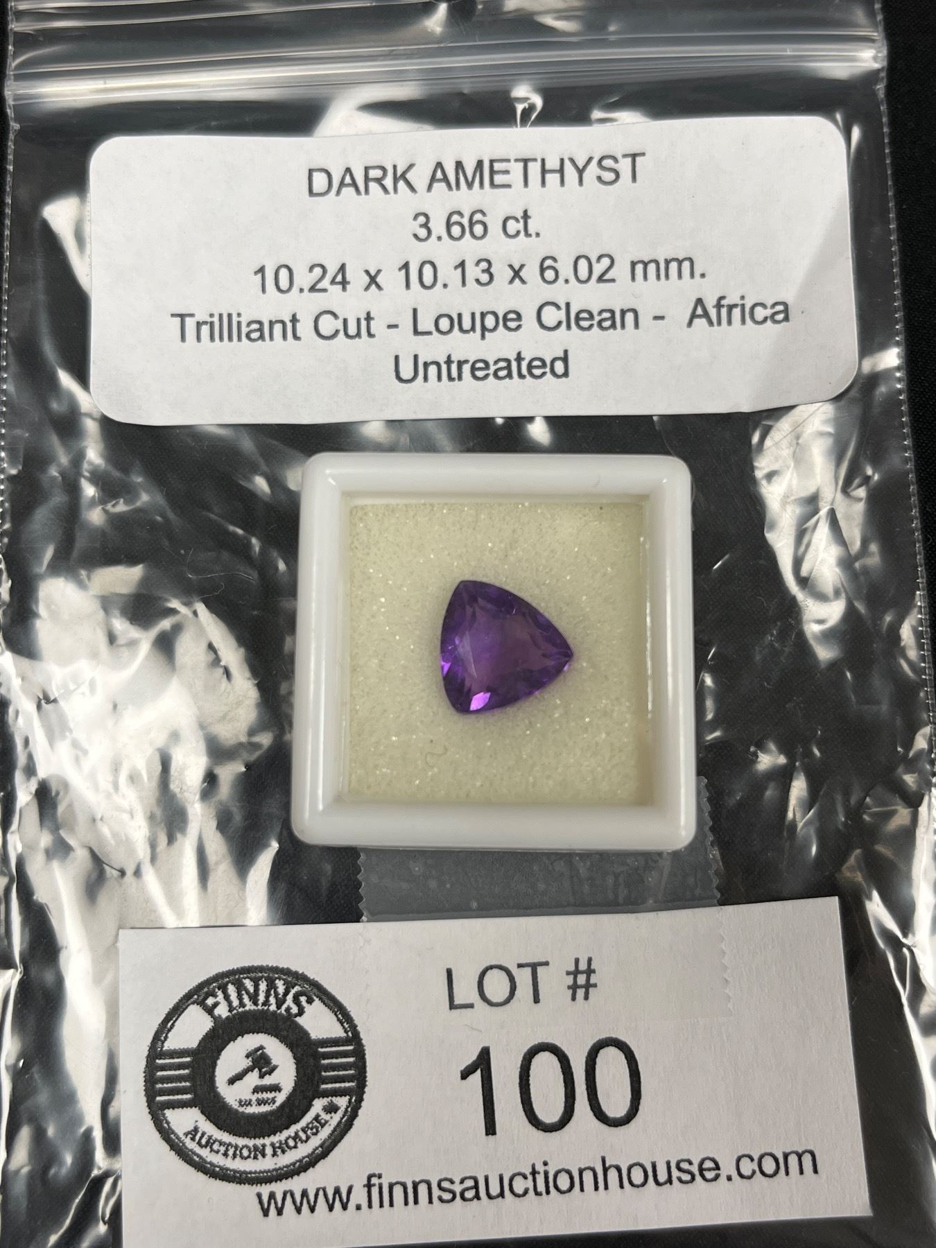 Dark Amethyst 3.66 ct 10.24 x 10.13 x 6.02mm Trilliant Cut Loupe Clean Africa Untreated