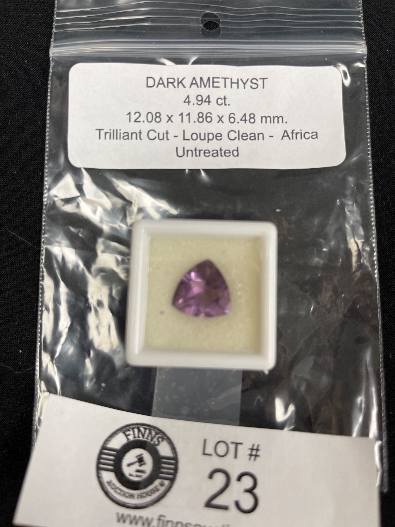 Dark Amethyst 4.94ct 12.08 x 11.86 x 6.48mm Trilliant Cut- Loupe Clean- Africa- Untreated