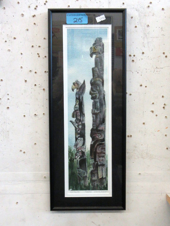 Alert Bay Totems. Exterior framed dimensions: 7.5" x 19".