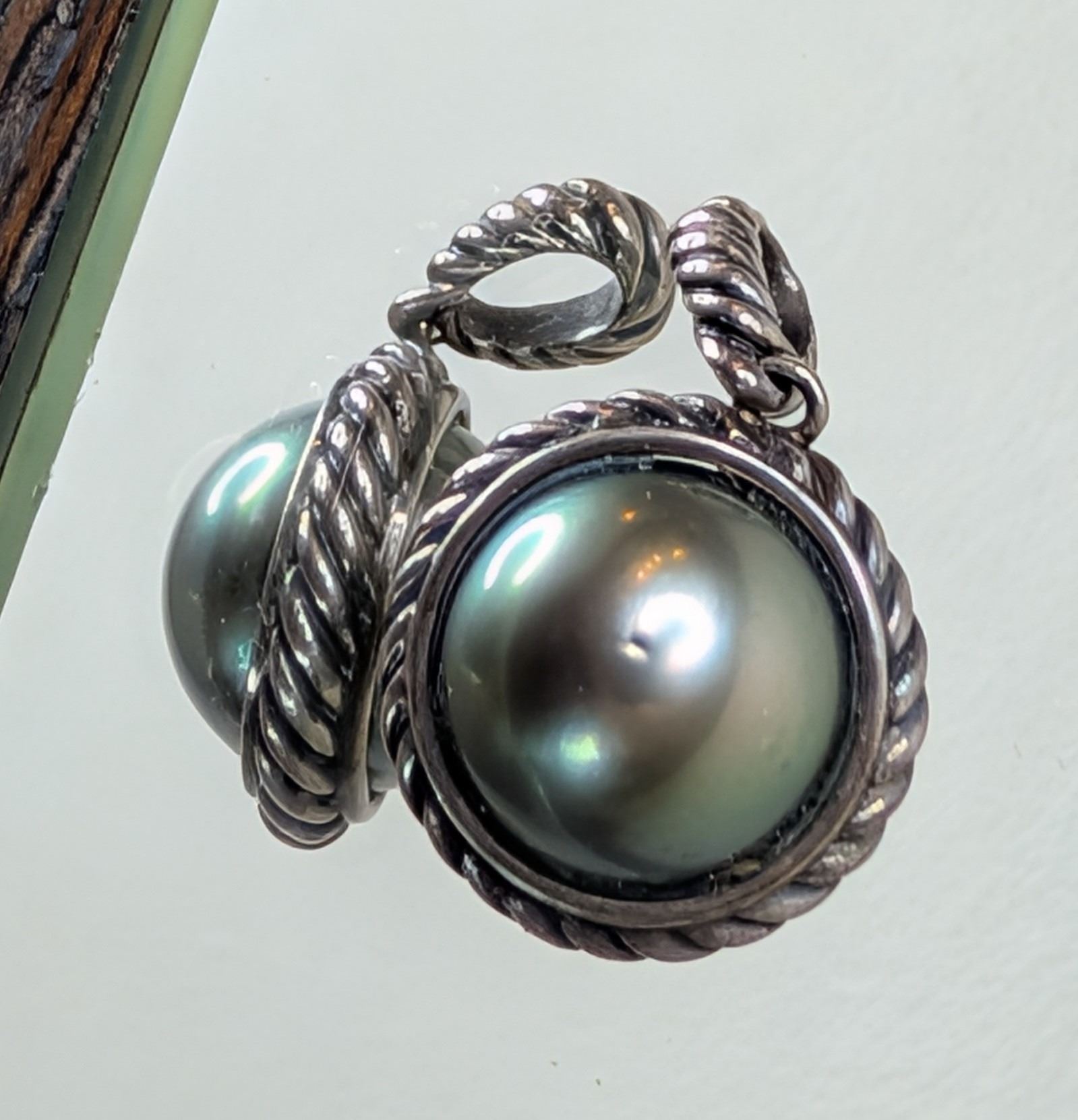Authentic David Yurman Grey Pearl Sterling Silver pendant (no chain)