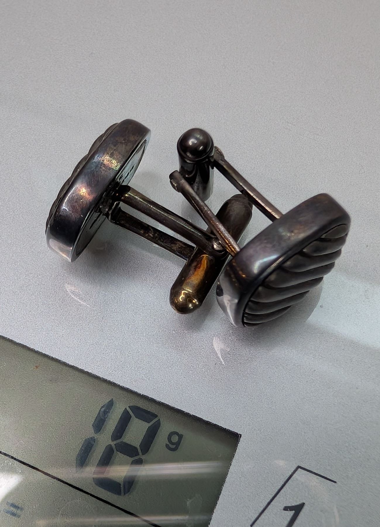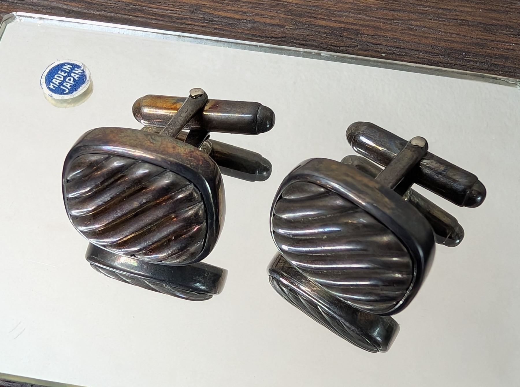 David Yurman Sculpted elongated cushion shaped SS/14K Cufflinks *polishing needed