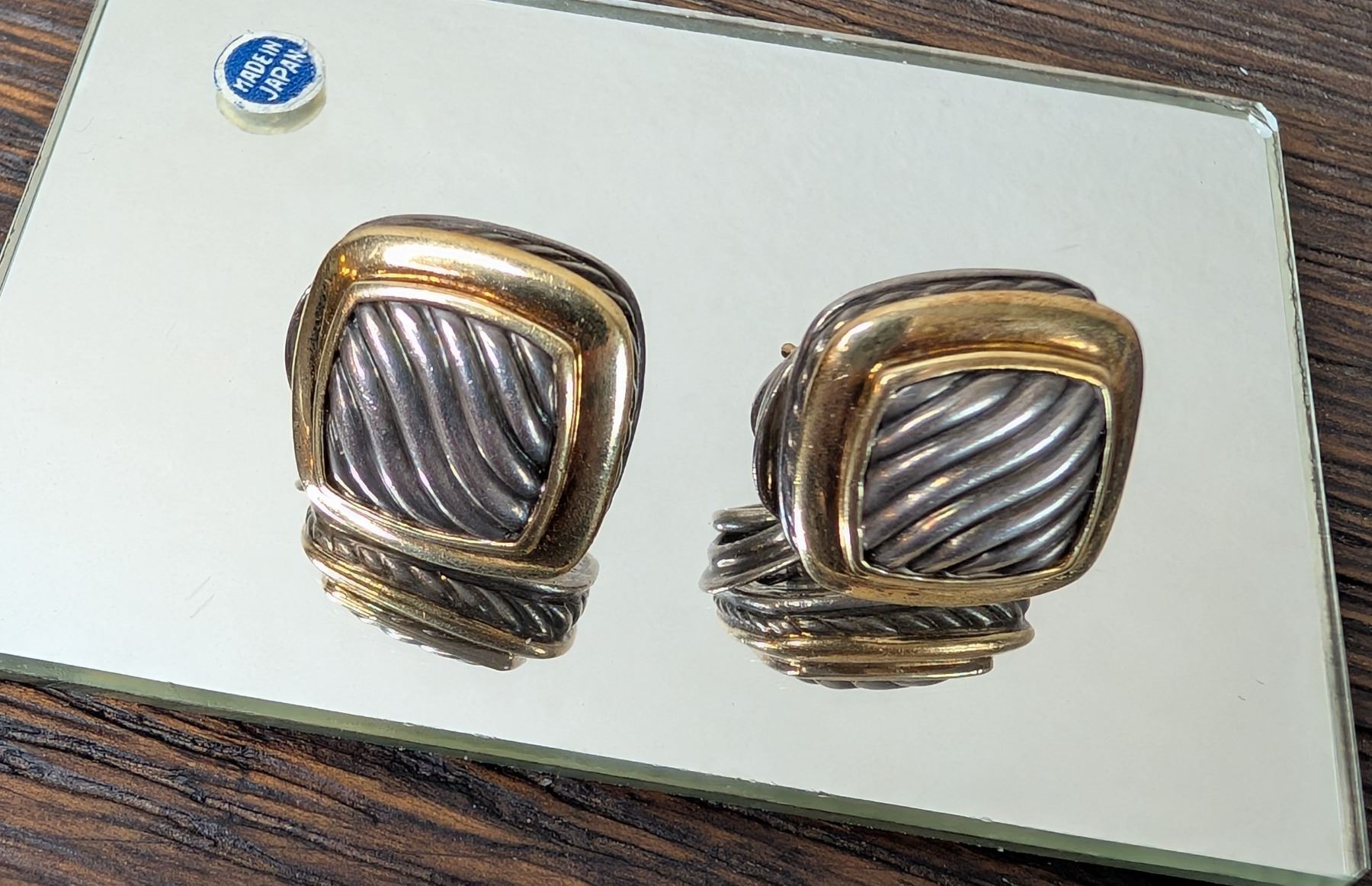 Authentic David Yurman (stamped) 18k yellow gold and sterling silver Albion Stud/clip back earrings