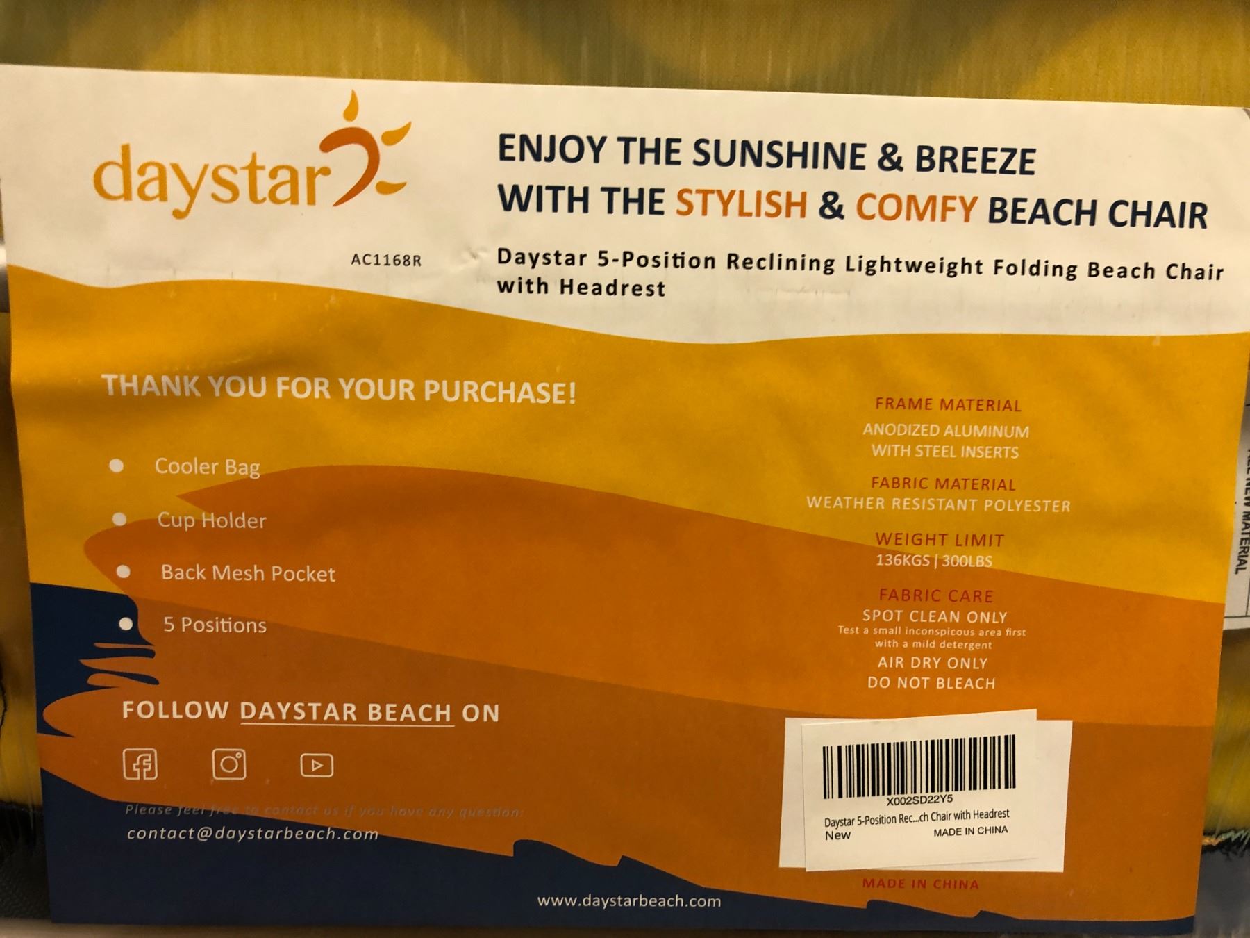 Daystar Beach Chair - Folding Aluminum Beach Chair with Headrest