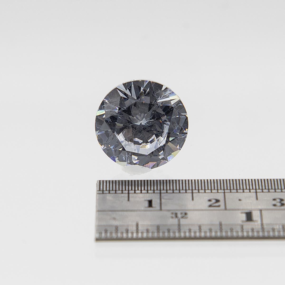 Dazzling 19.5 ct VVS1 diamond Solitare. This brilliant lab created diamond measures 15mm and exhibits a multitude of flashing colors of blue, orange, red, and pink. Near flawless and ready to mount.
