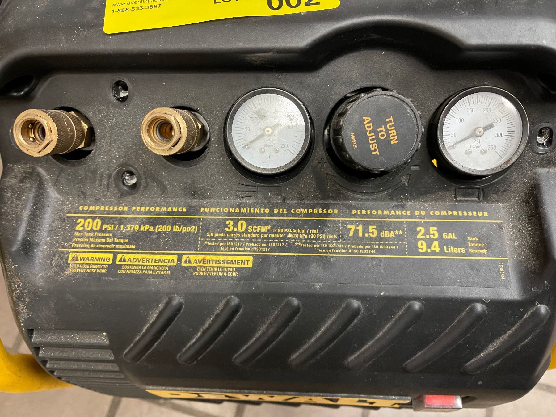 DeWalt 200PSI 2.5 Gal compressor