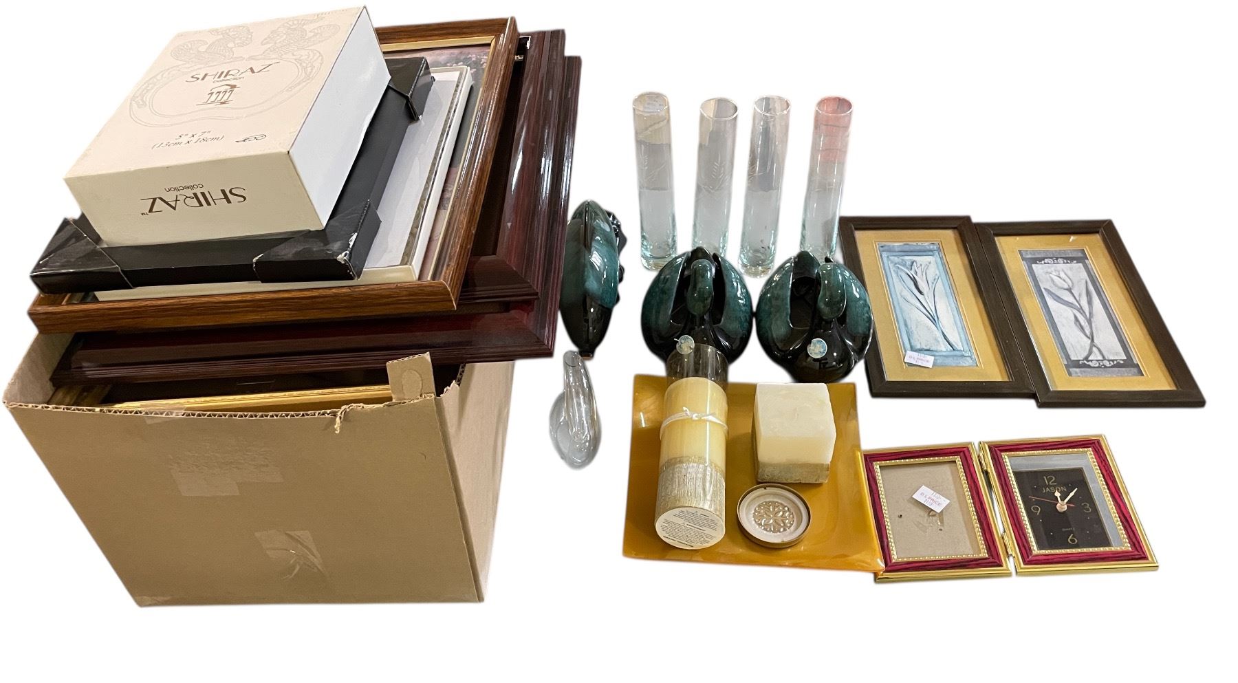 Decorative Homeware Lot - Picture Frames, Swans, Vases, Clocks, Candles & Art