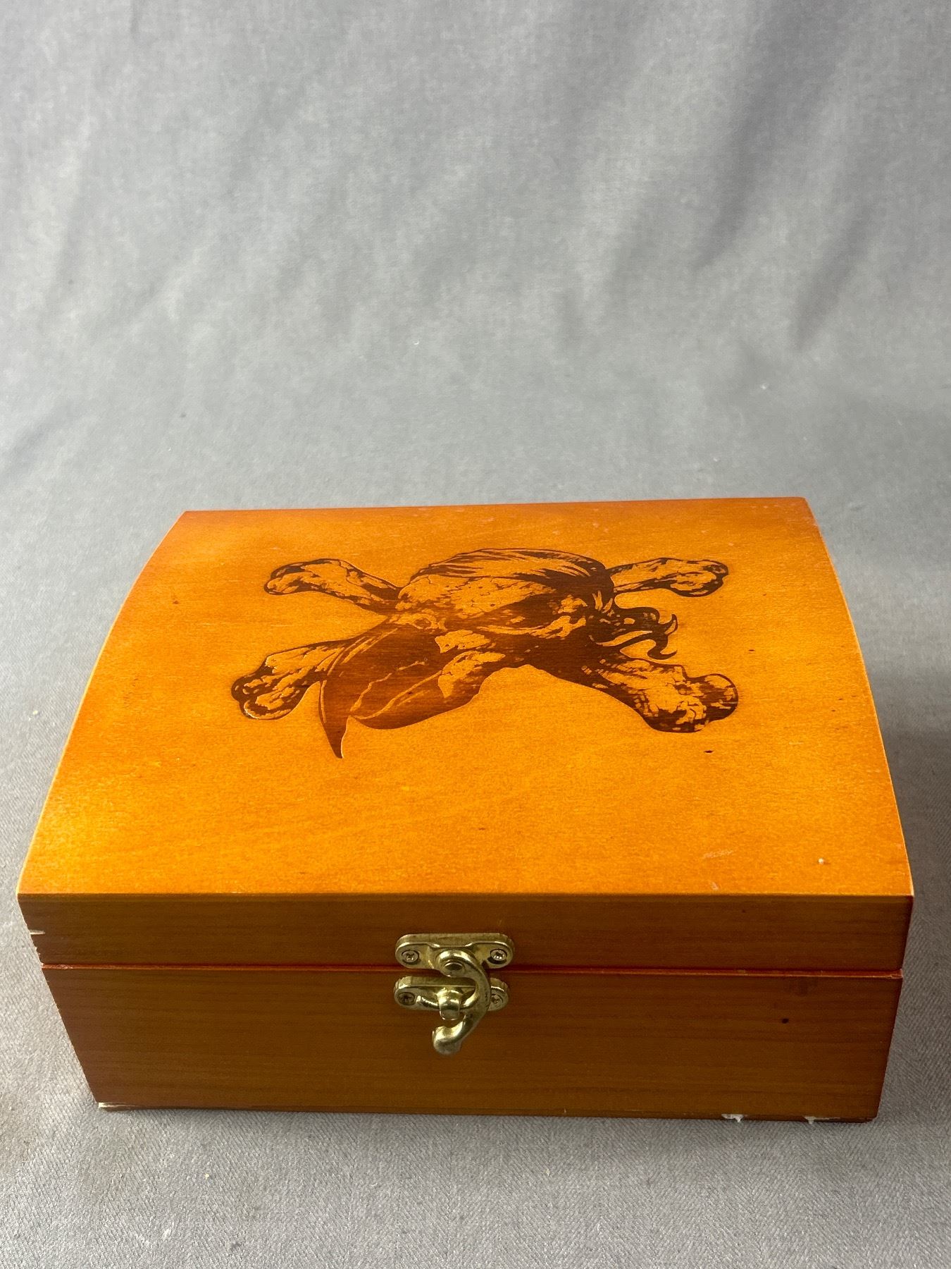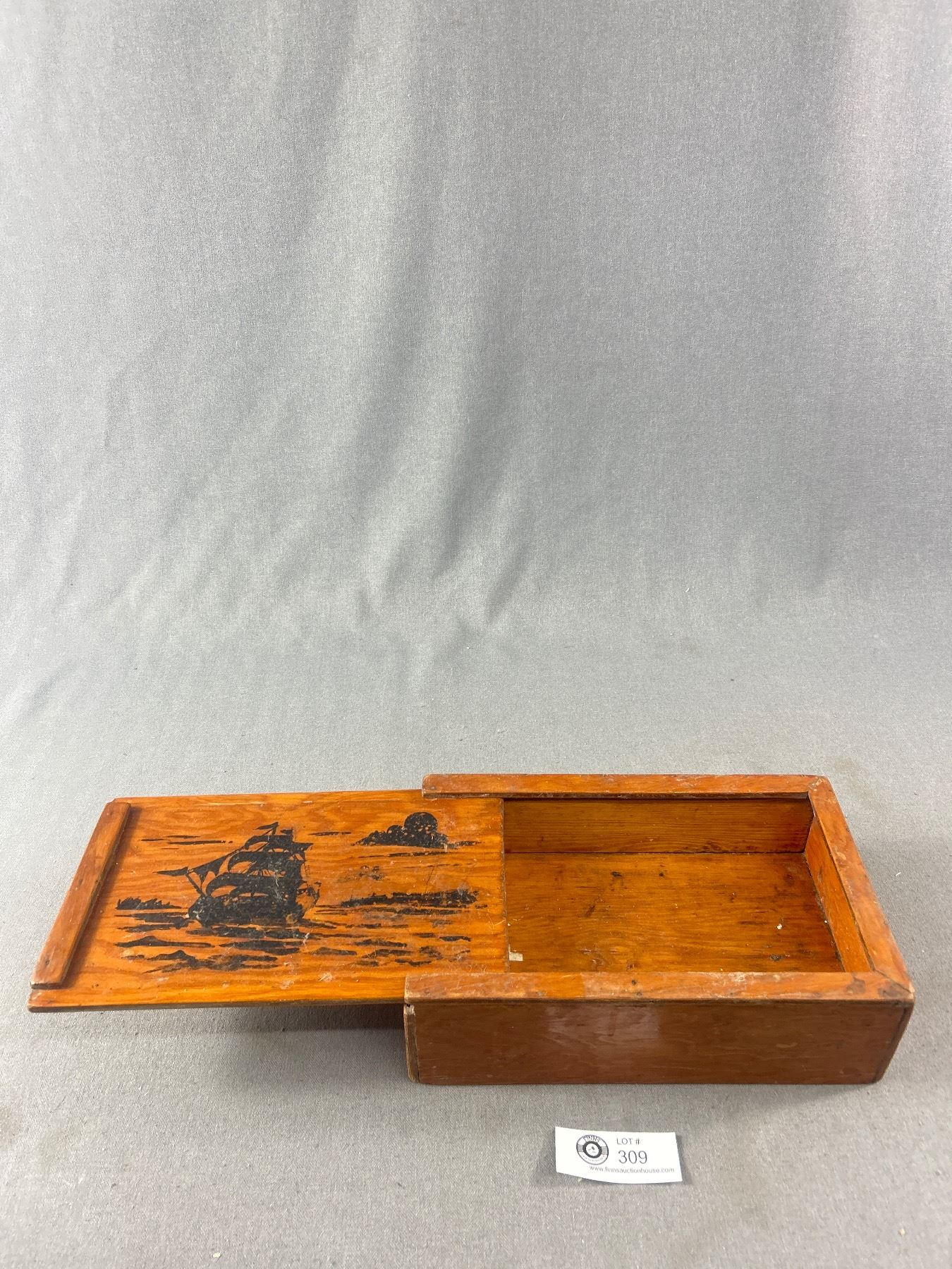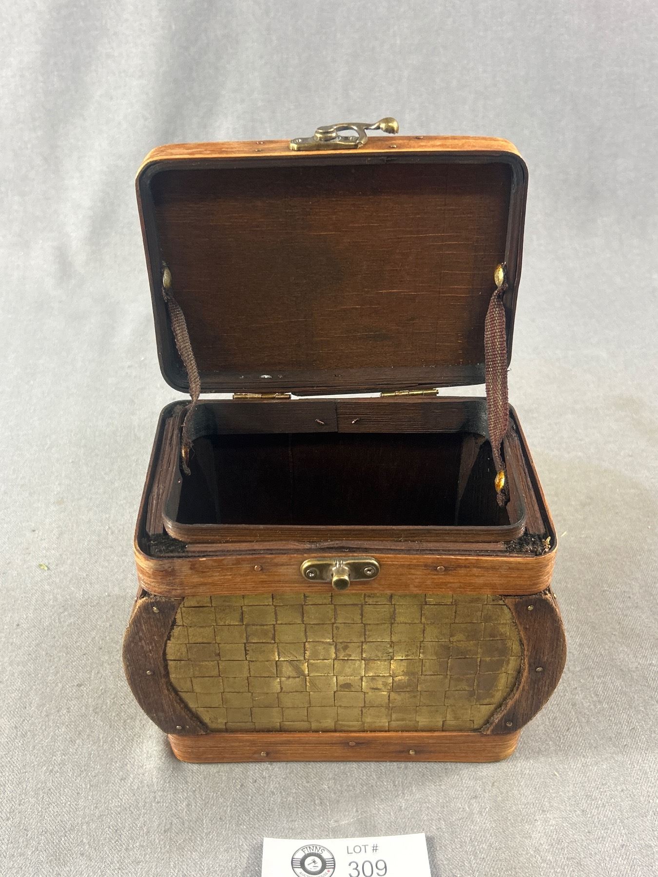 Decorative Trinket Box w/ Latch Approx. 5.5" H x 7" x 4" & 2 Wood Storage Boxes. Approx. 10" x 6.5" x 3" & 7" x 8.5" X 3.5"