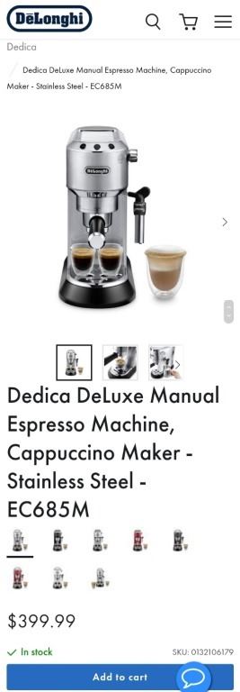 Delonghi Dedica DeLuxe Manual Espresso Machine, Cappuccino Maker - Stainless Steel - Retail $399.99