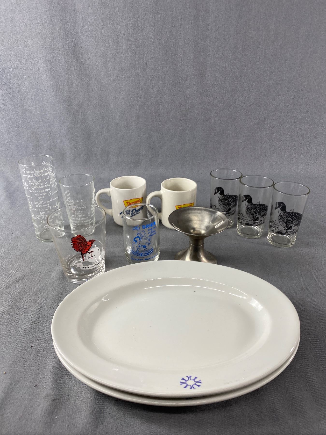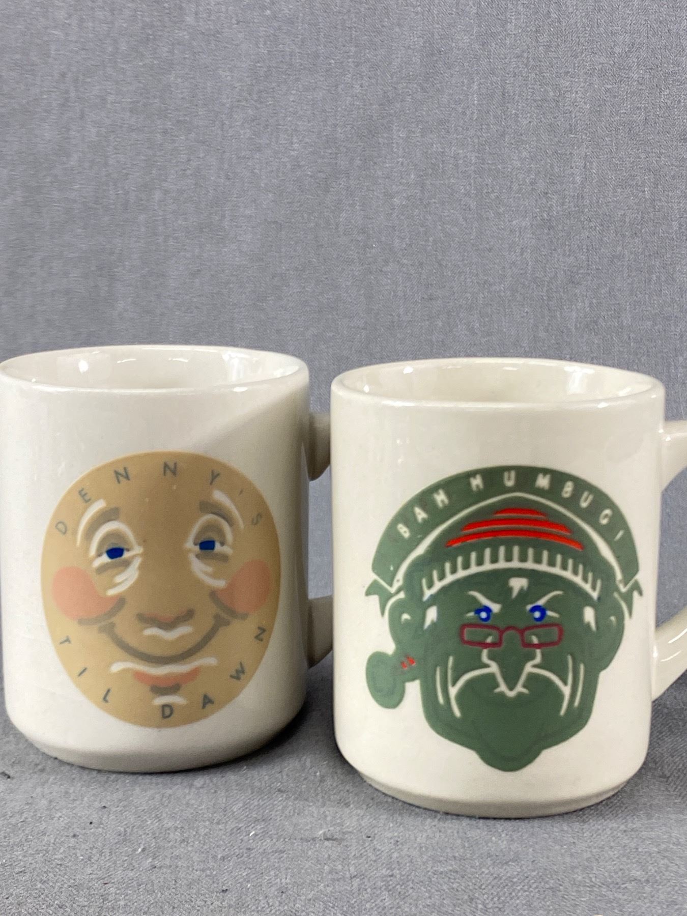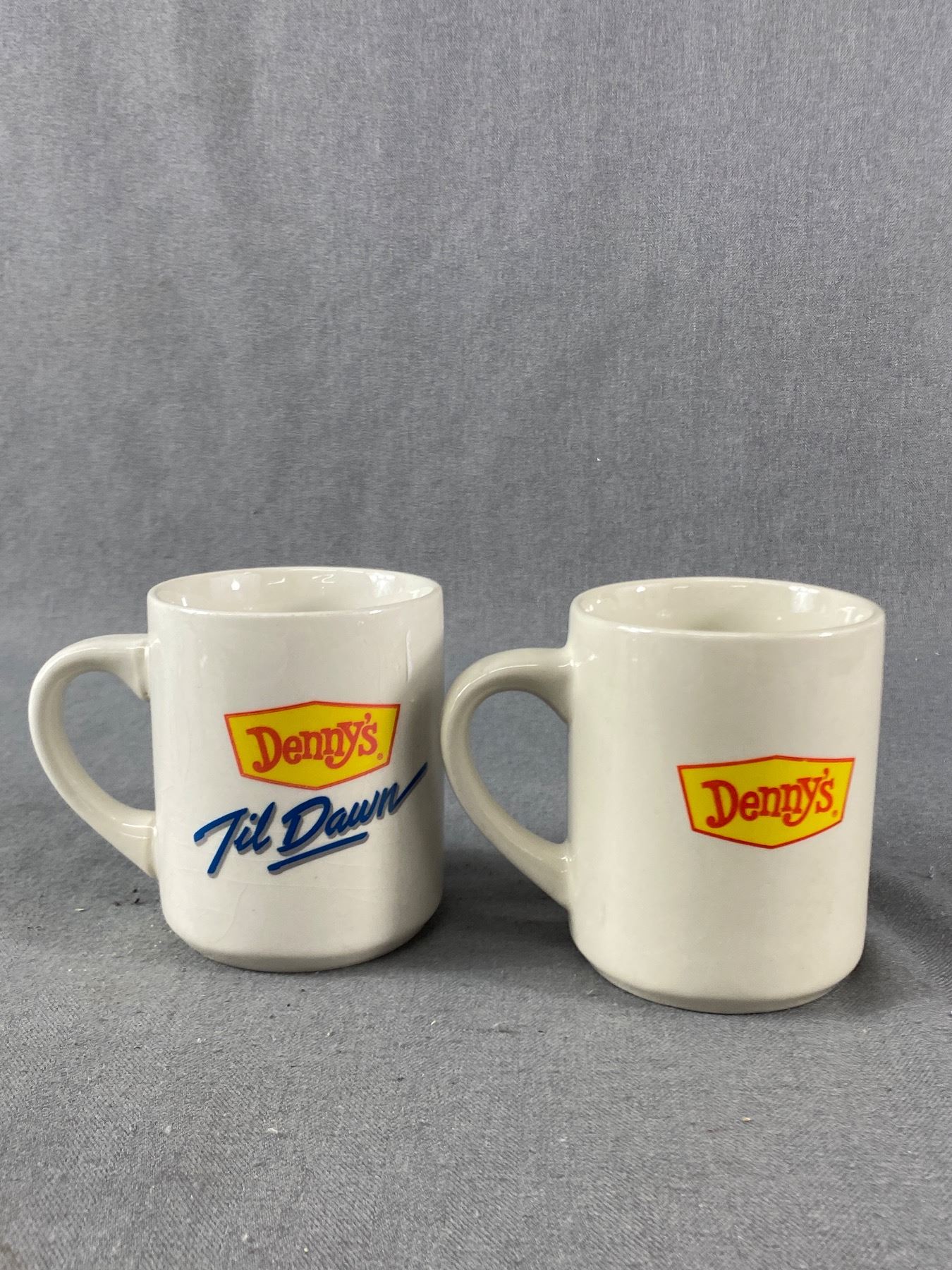 Denny's Coffee Mugs, Advertising Glasses & JE Heath Platters Made In Canada