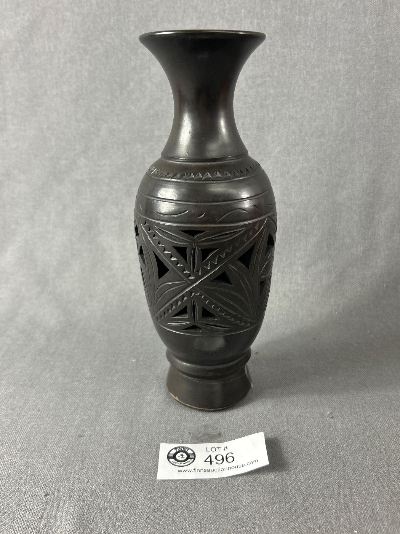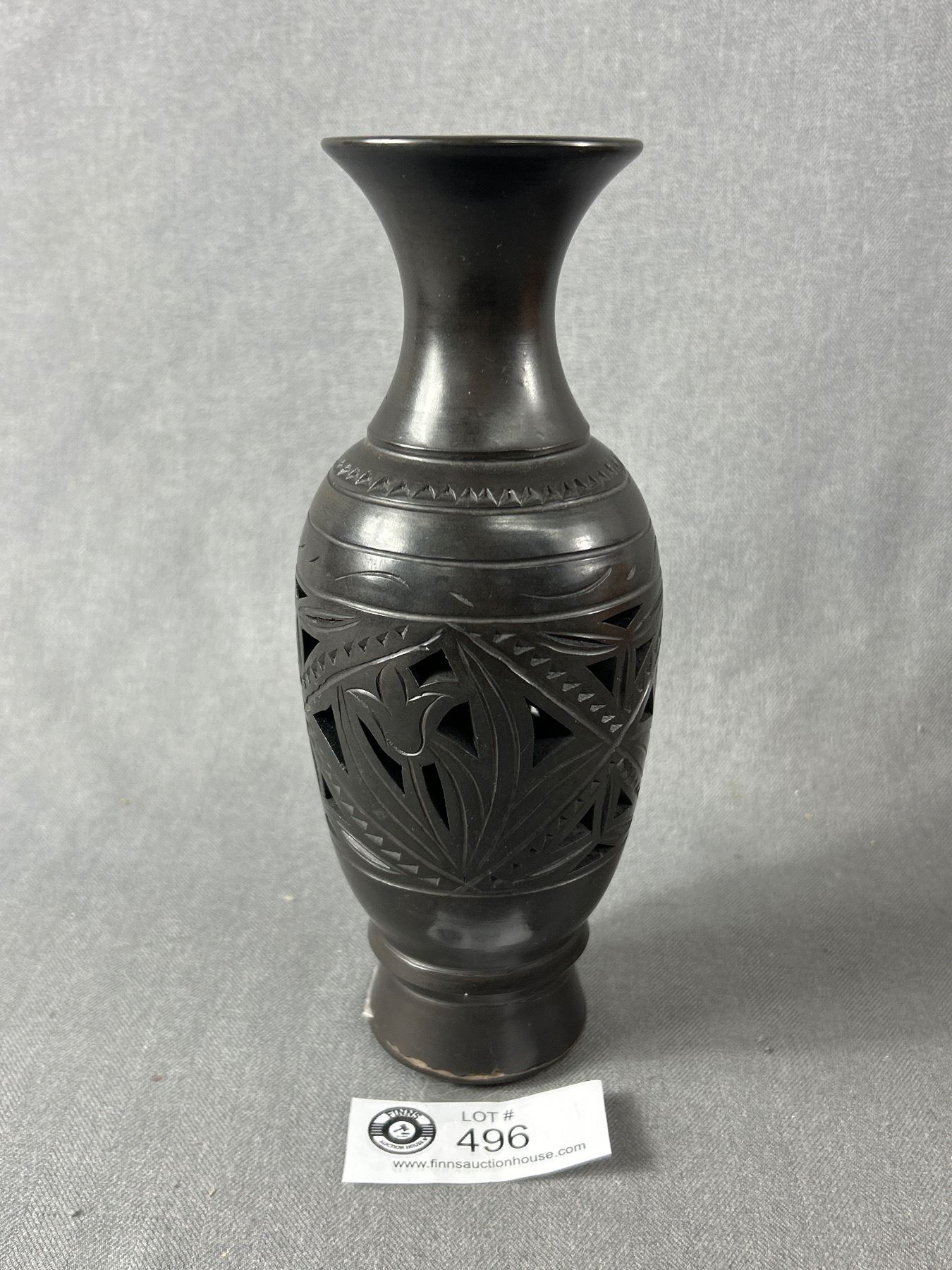 Denzhou Black Clay China Vase. Marked On Bottom. Approx.8.5" H