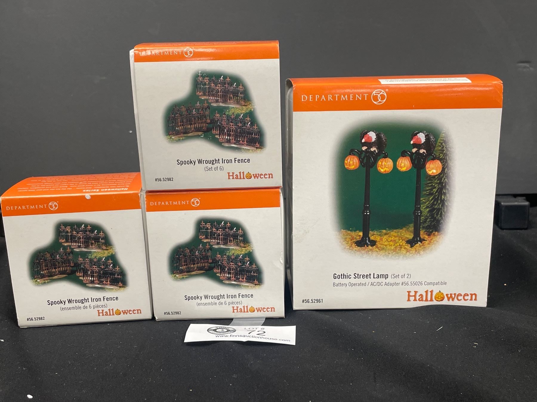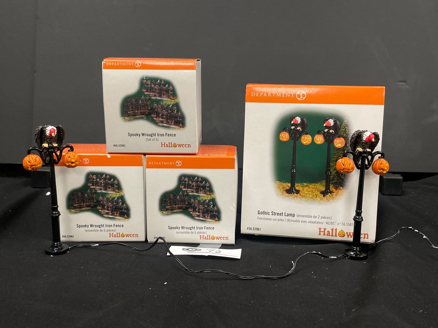 Department 56 Halloween Village 1 Box Gothic Street Lamp and 3 Boxes of Spooky Wrought Iron Fence