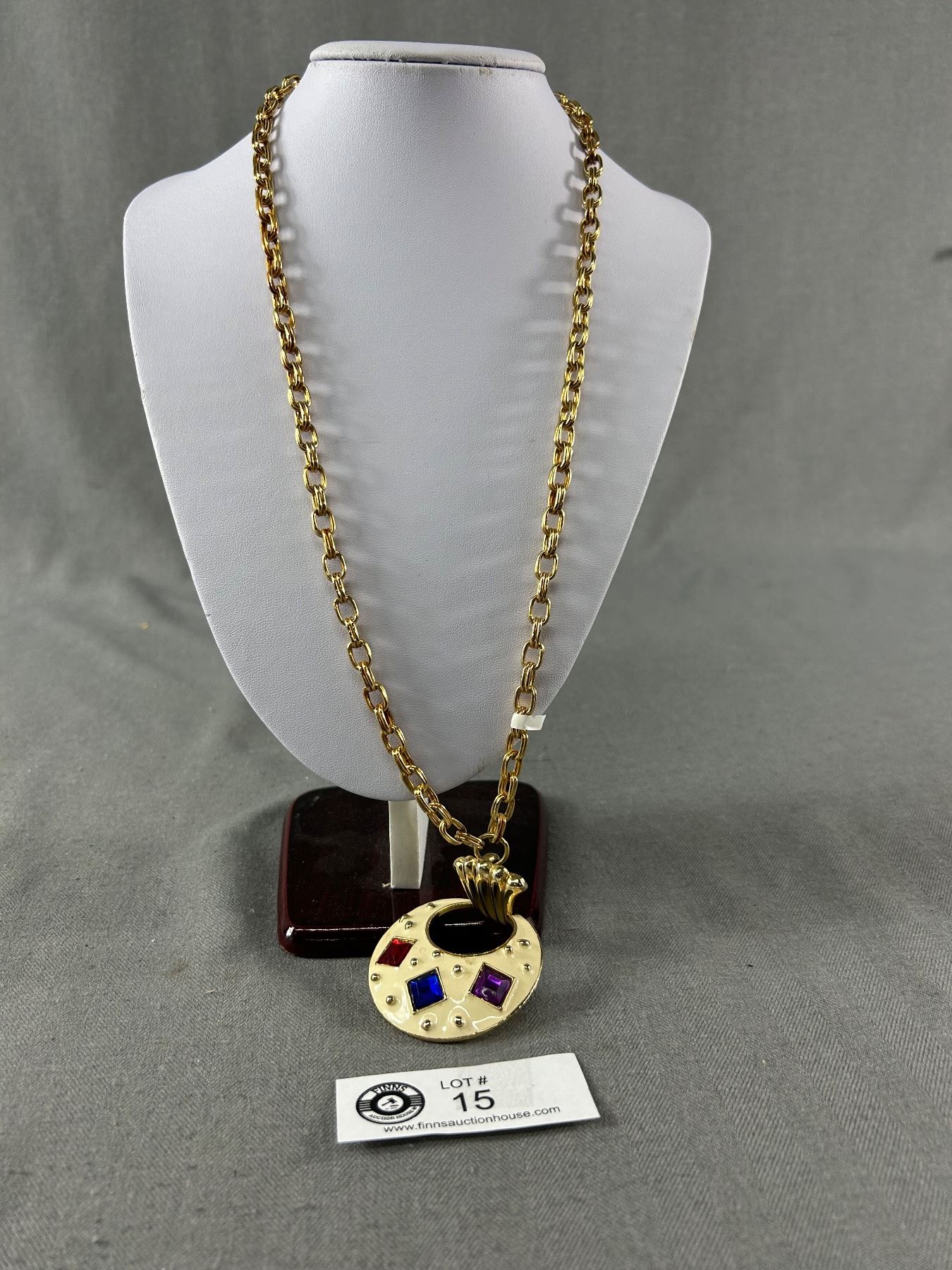 Designer Signed Beau Geste 26" Necklace w/ 3" Rhinestone Pendant