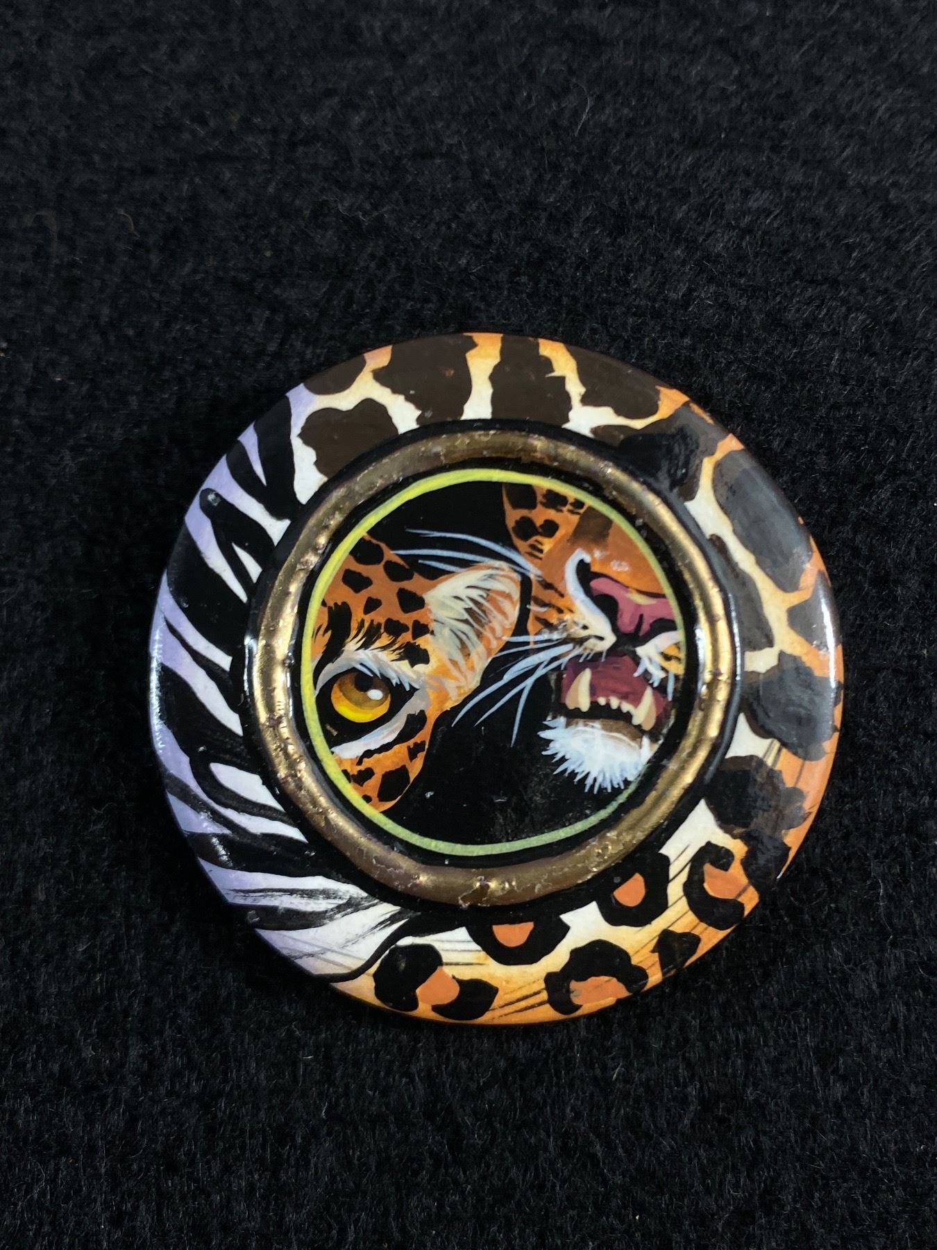 Designer Signed Hand Painted Leopard Brooch