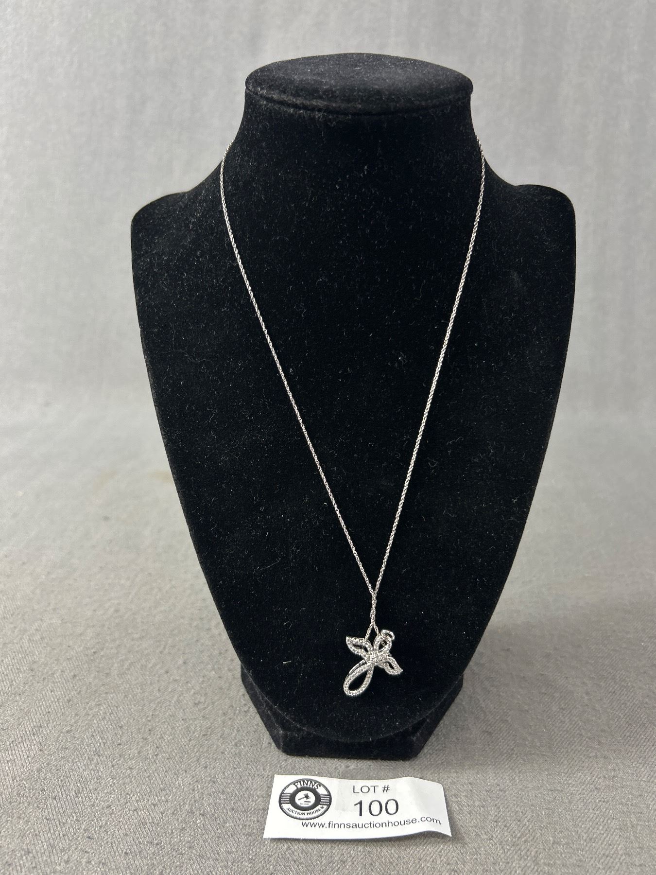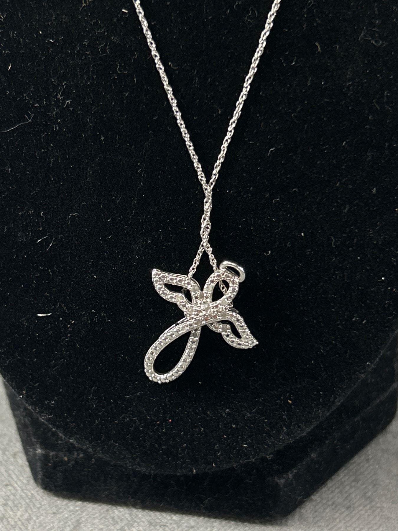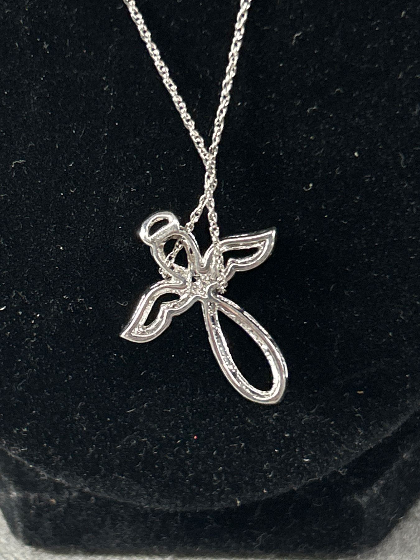 Diamond Cross Angel Wing Sterling Silver Necklace - 1" Pendant 20" Chain - Makers Mark Initials in a Star - Tested