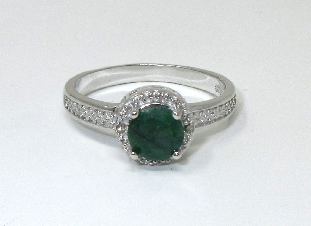 6 mm Round cut emerald & 2 side diamonds. Includes $340 certificate.
