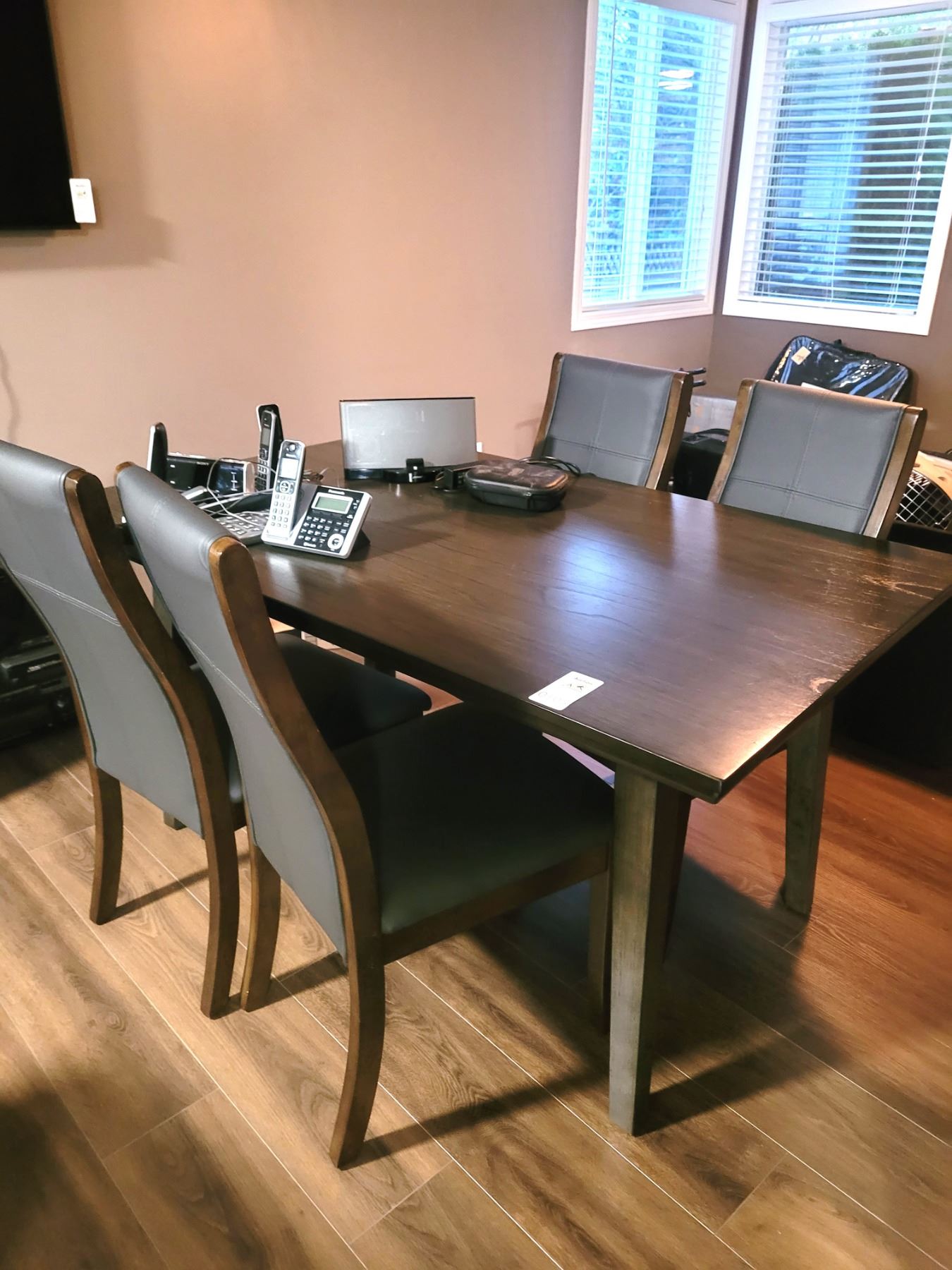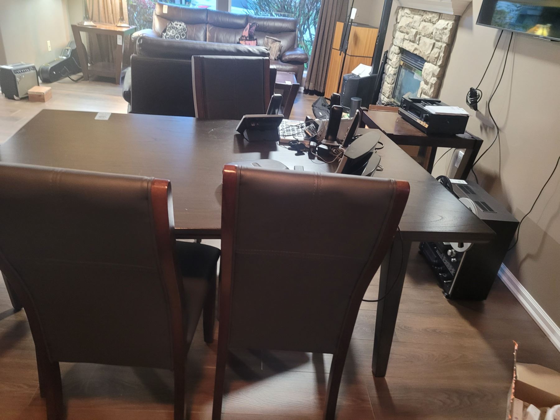 Wood dining table, 60x38x30, four dining chairs. Pick up 11 am