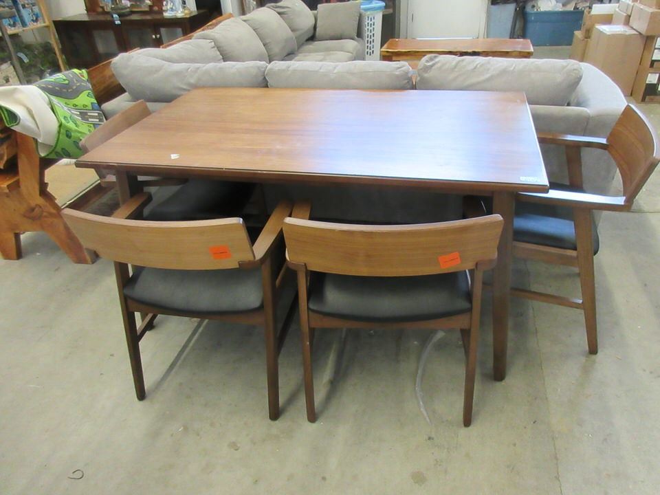 Table top measures 36" x 59". Some surface scratches on the table. The chairs appear to be in good condition.