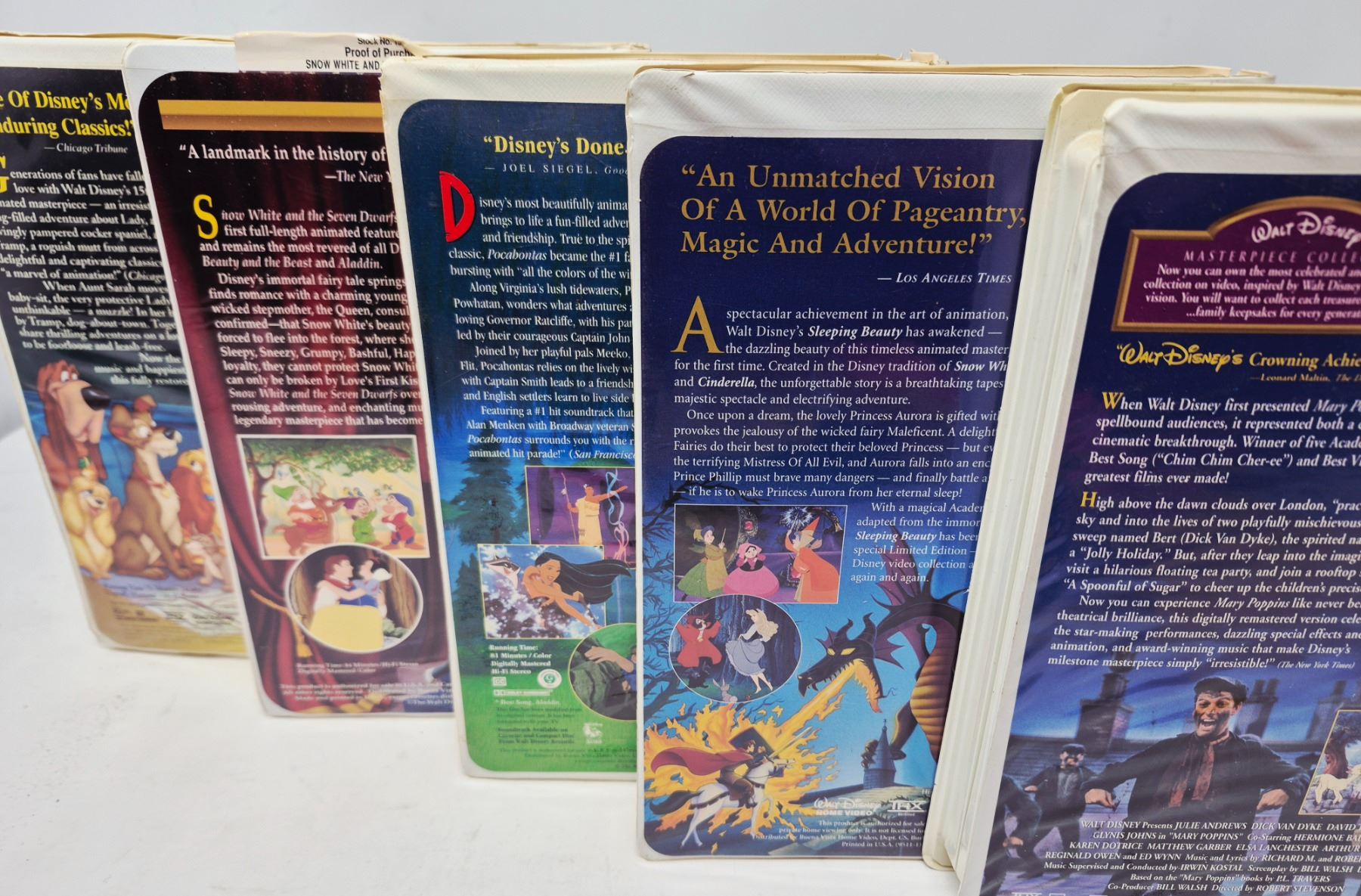 A dreamy Disney bundle featuring six beloved classics on VHS! Titles include: Mary Poppins, Sleeping Beauty, Pocahontas, Snow White and the Seven Dwarfs, and Lady and the Tramp.