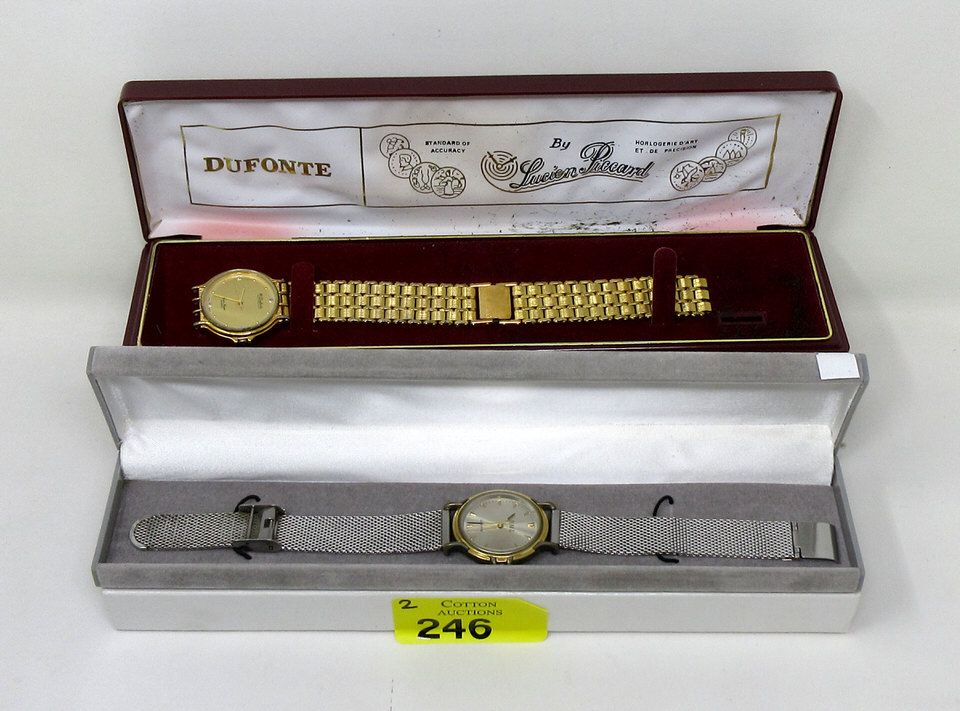 Dufonte Lucien Picard watch needs a bracelet pin. Bonica BML watch has personal inscription on the back.
