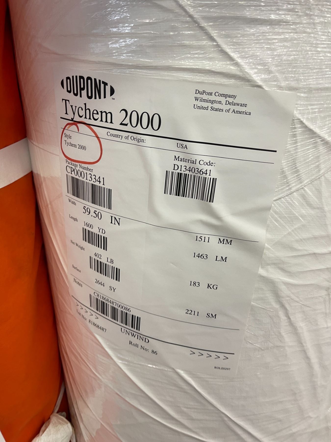 Dupont Tychem 2000 Roll - Approx. $7,000 / Roll