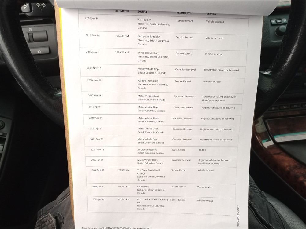 Automatic with TIPtronic transmission and 3.O Litre Engine, 6 cylinder , All Wheel Drive, 227294 KilometersGold, 5 PassengerNo Declarations - BC Vehicle, No Accidents over $2000, Power Steering, Power Brakes, , Intermittent Wipers, Dual Air Bag, AM/FM Stereo , Rear Defroster, Bucket Seats, Anti Lock Brakes, Front Disc Brakes-Air Conditioning, Power Windows, Power Locks, Keyless Entry, Tilt Steering, Cruise Control, Alloy Wheels, Anti Theft, Power Sunroof, CD Player, CD Stacker, Leather Seats, Power Seats, Heated Seats, Memory Seats, Information Center, Parking Sensors, Traction Control, Rear Heat and Air, Steering Wheel Controls, Fog Lights, Roof Rack, Dual Zone Climate, Spare KeyAuction Notes : Power Mirrors, Heated Steering, Dual Exhaust, Spare Key, Brakes Front 90 % Rear 90 %