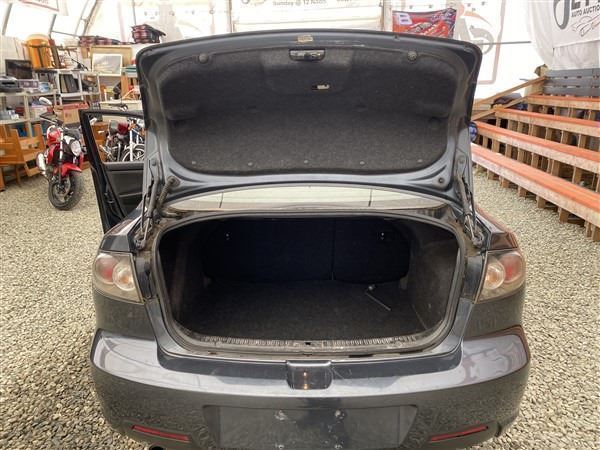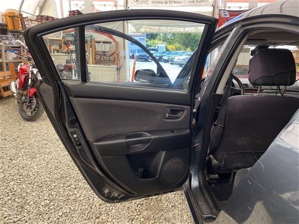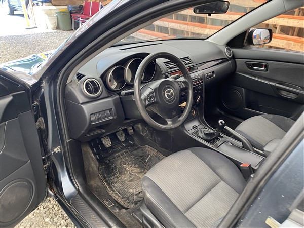 2008 Mazda 3 Grey 208079 KMS Manual 2.0L 4 Cylinder Front Wheel Drive 5 Passenger Air Conditioning, Power Windows, Power Locks, Key-Less Entry, Tilt Steering, Cruise Control, Alloy Wheels, Dual Air Bags, Power Sunroof, CD Player, Steering Wheel Controls Auction Notes: [1] Accidents $1059, [1] Glass Claim $842, totaling $[1901], Ex OOP [AB], J140753, Brakes Front 70 % Rear 80 % l/s lower ball joint failed, l/s rear caliper leaks Not Suitable For Transportation, Must be Towed.
