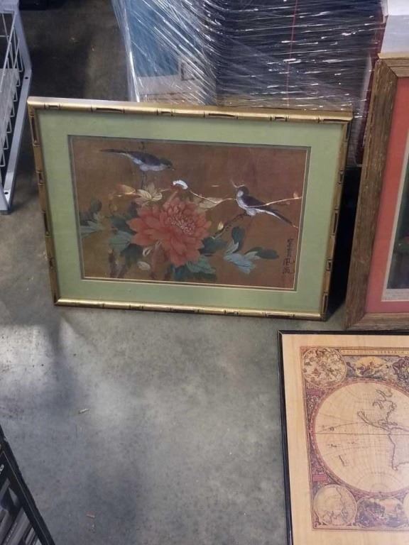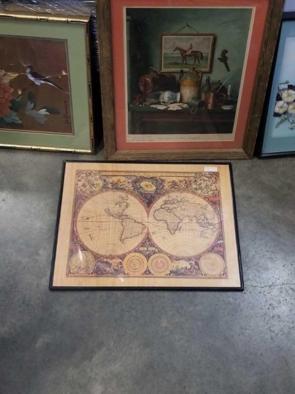EASTERN SHADOWBOX ART, EASTERN PRINT AND 2 PRINTS