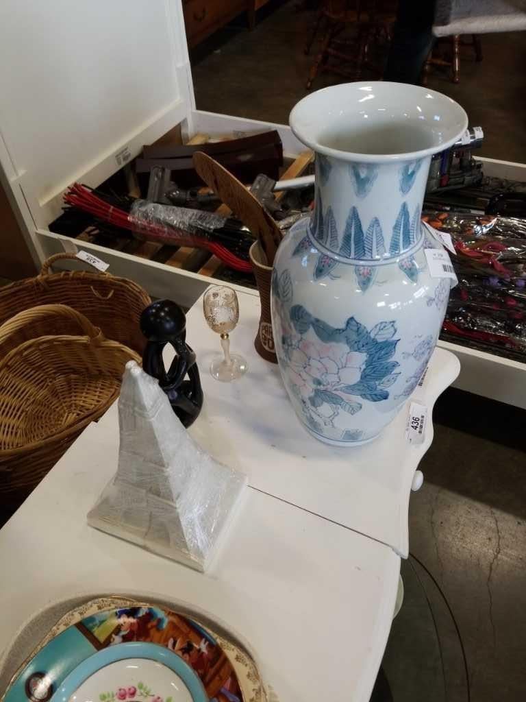 EASTERN VASE, COLLECTABLES, STONE FIGURE, BOOMERANG, EIFFEL TOWER BOOKENDS
