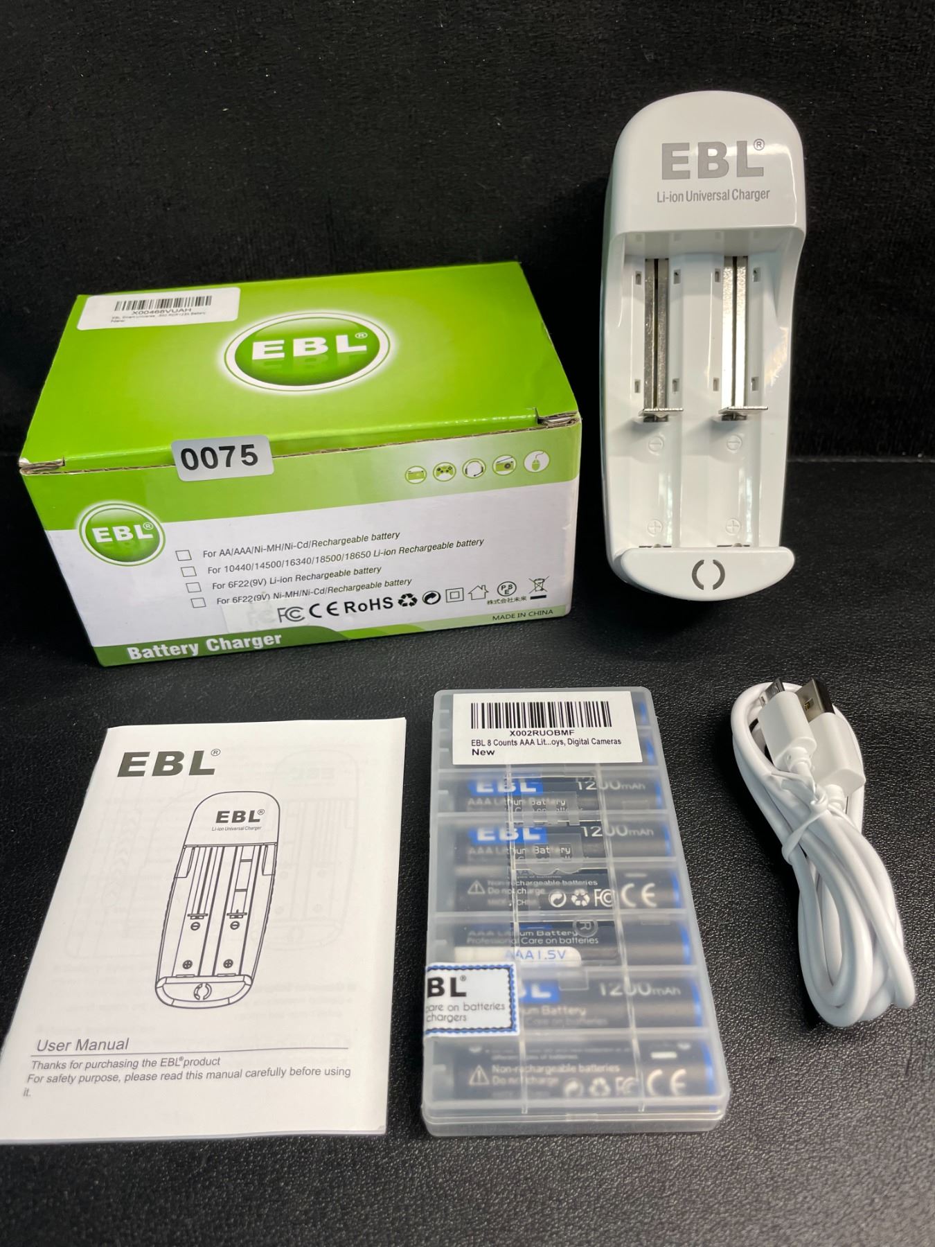 - Universal Battery charger with pack of 8 AAA Rechargeable Lithium Batteries