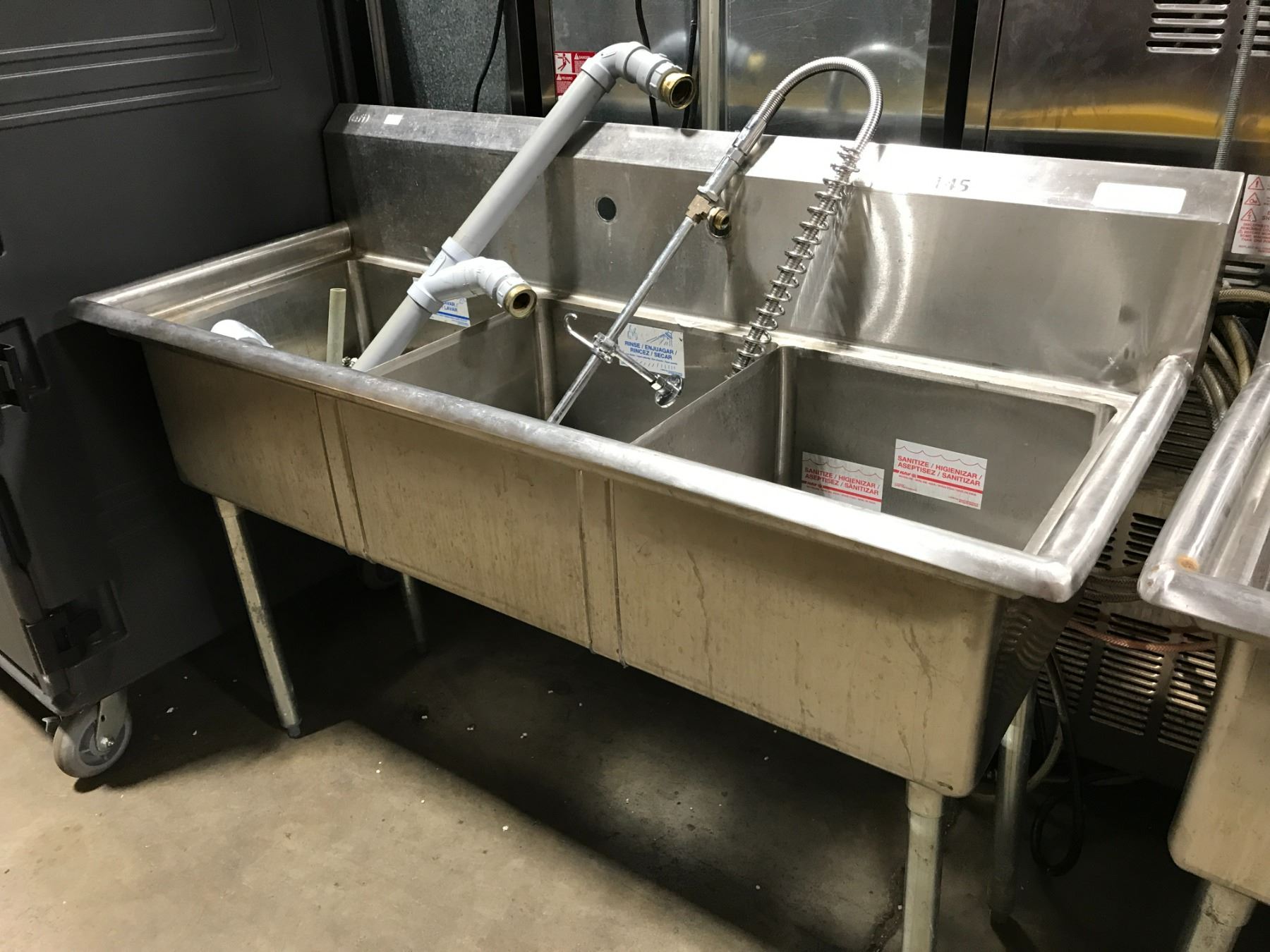 EFI 60X24X36" TRIPLE BASIN STAINLESS STEEL SINK WITH RINSER